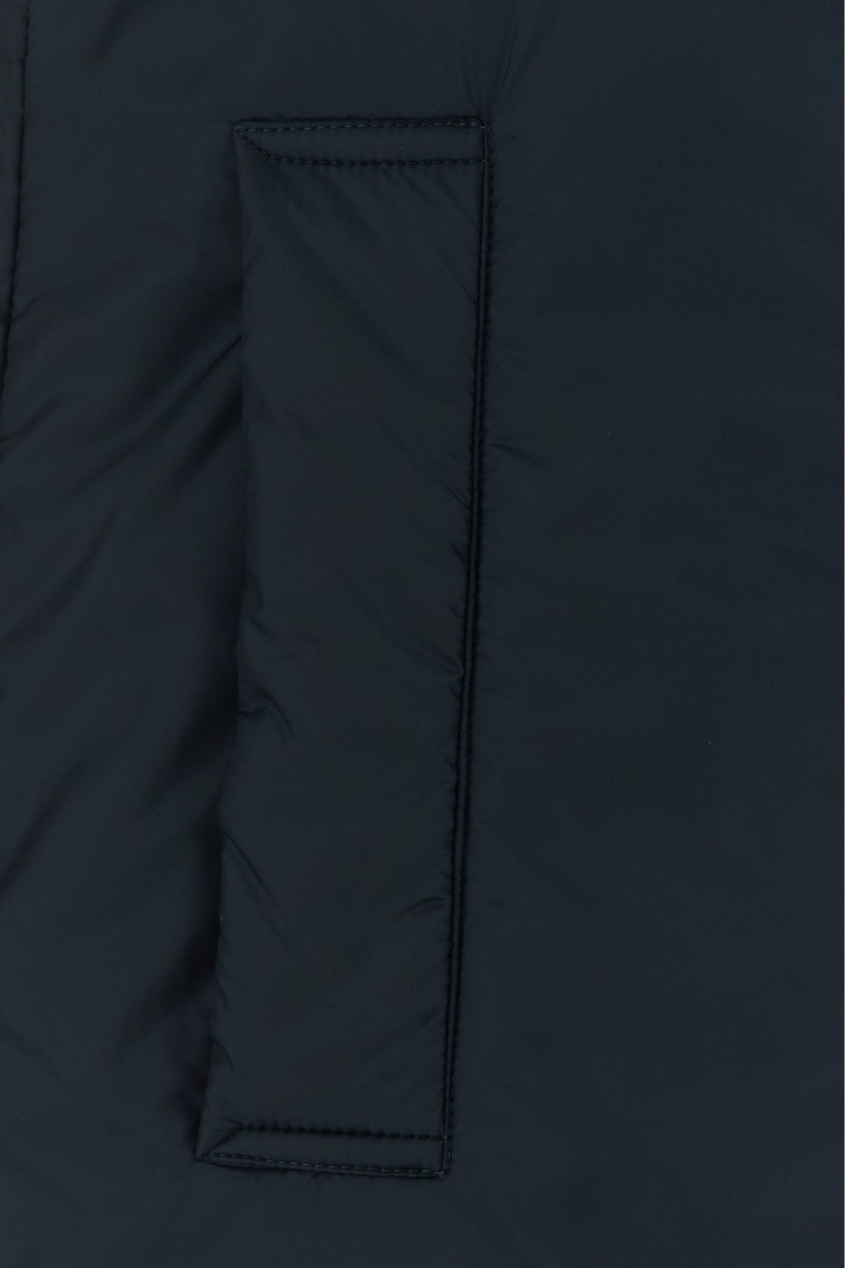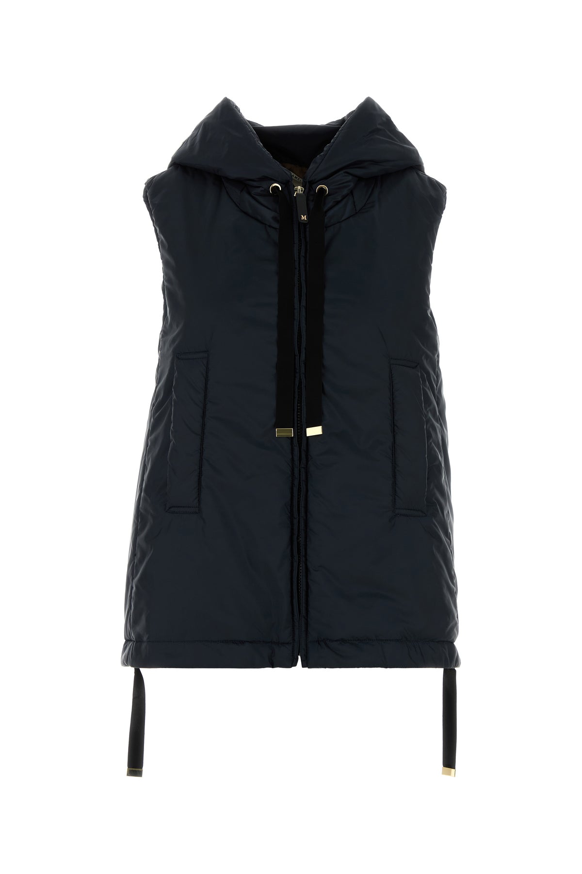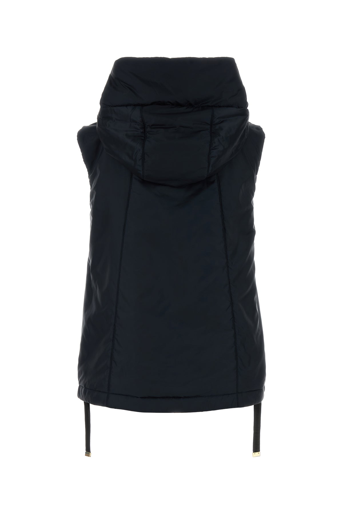 Giubbino smanicato realizzato in poliestere caratterizzato da cappuccio con maxi coulisse.