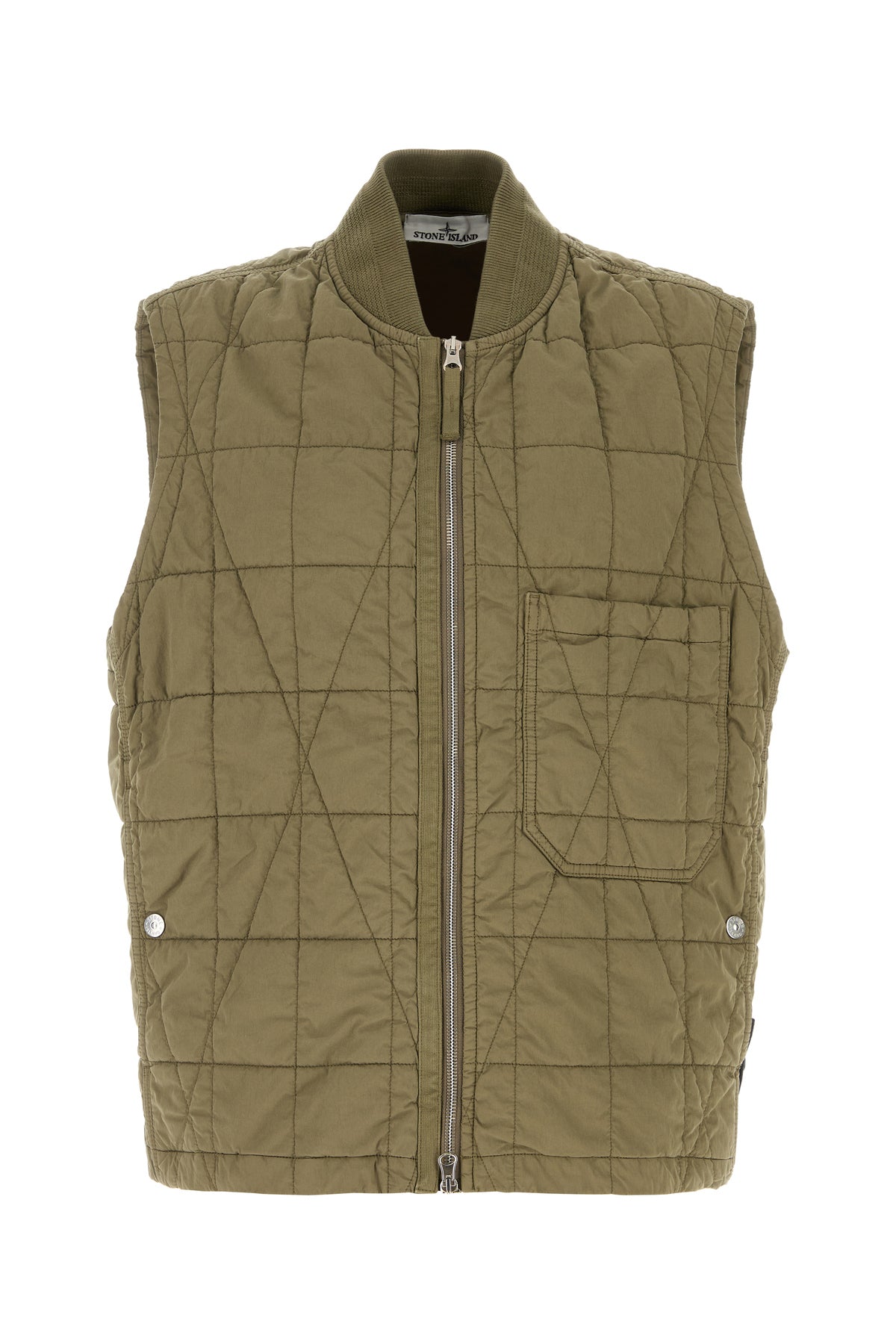 Giubbino smanicato realizzato in misto cotone trapuntato arricchito da etichetta logata amovibile sul lato.