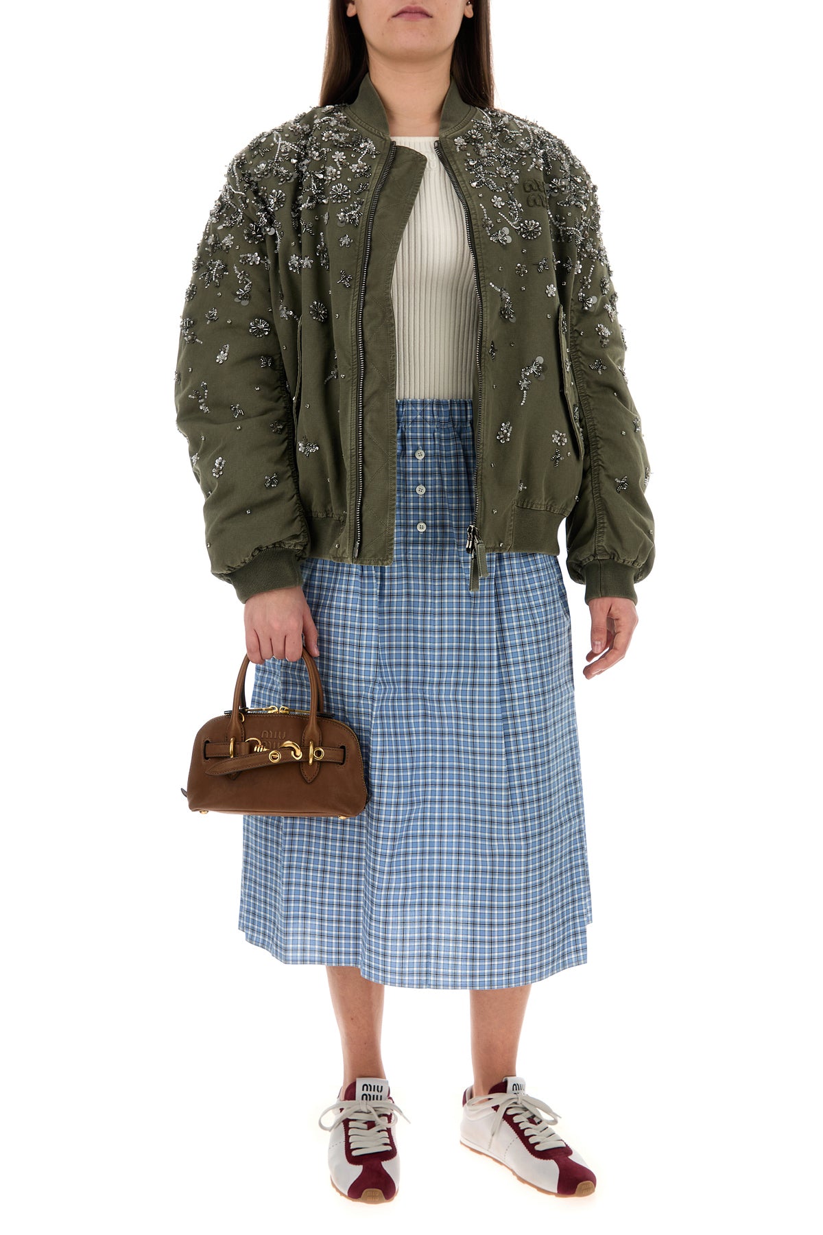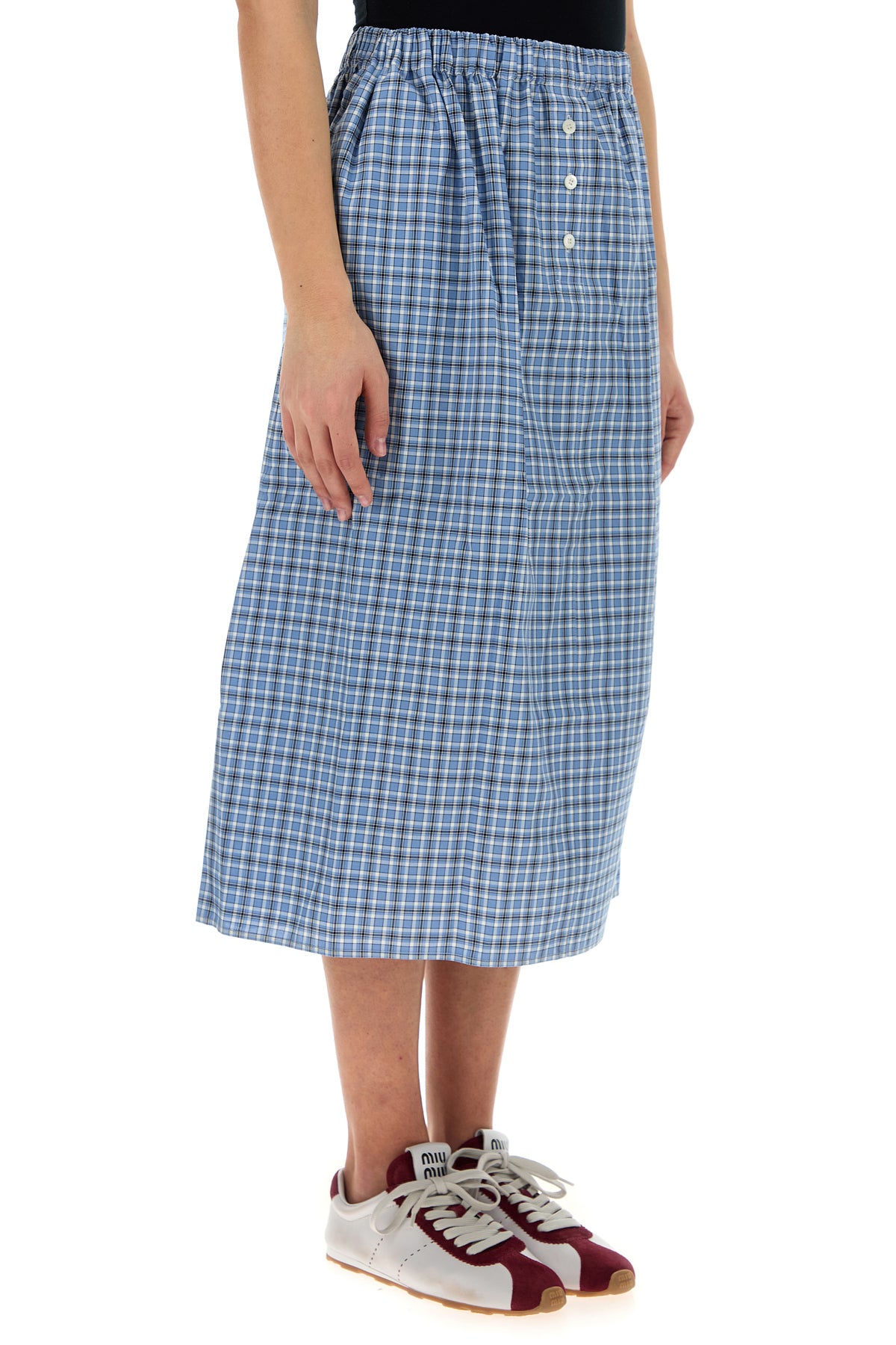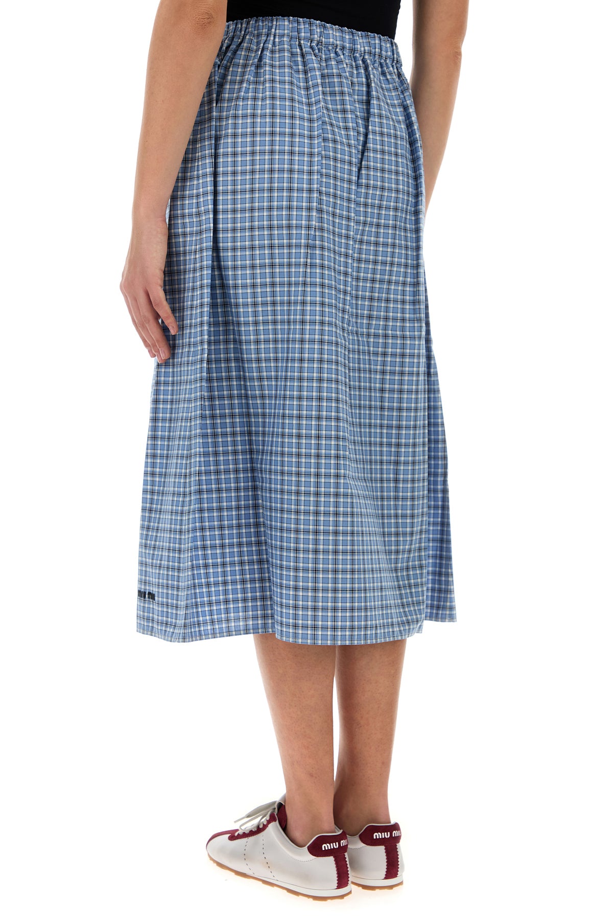 Gonna realizzata in puro cotone caratterizzata da ricamo a quadri su tutta la superficie e logo ricamato sul fondo.