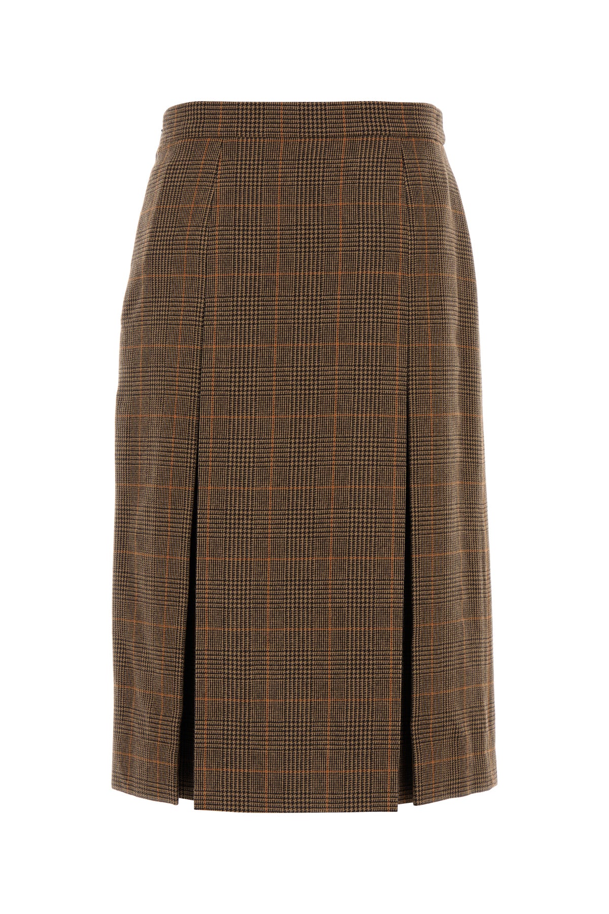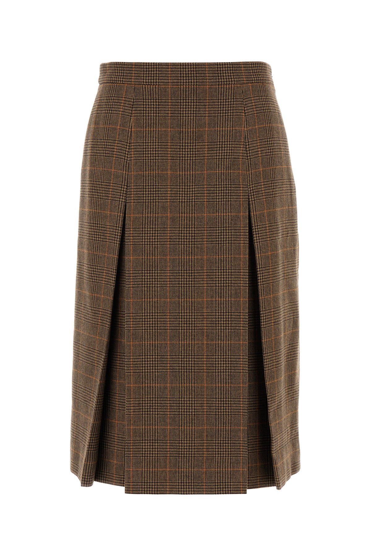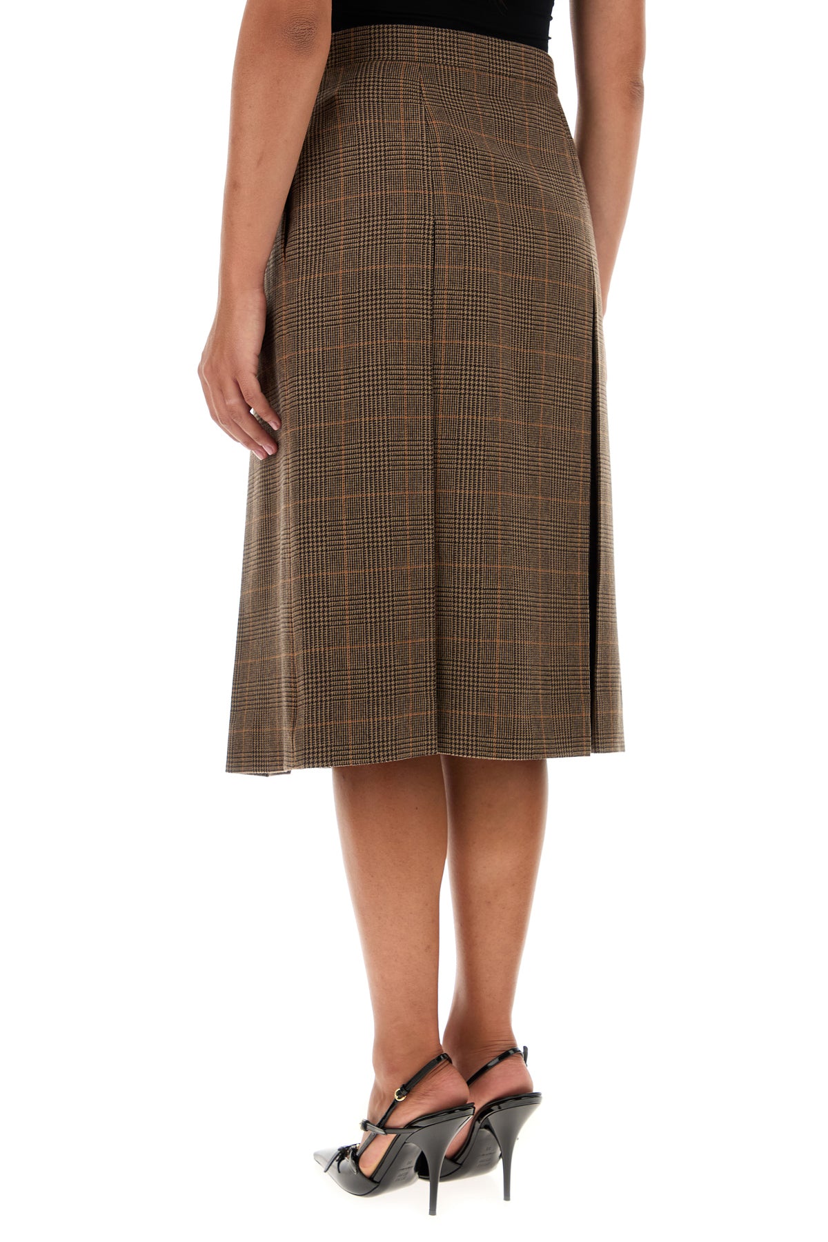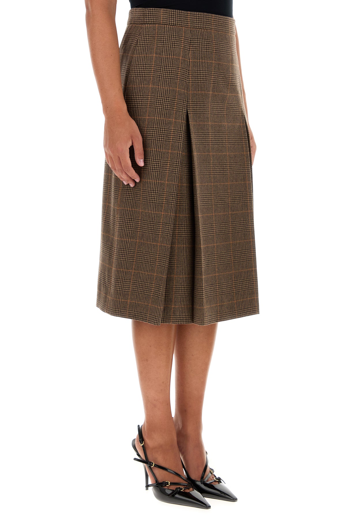 Gonna midi realizzata in lana vergine e cashmere caratterizzata da ricamo a motivo tartan su tutta la superficie.