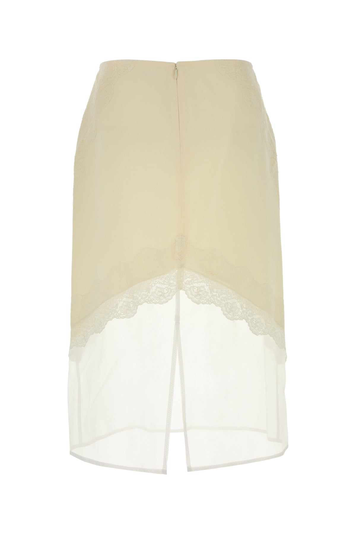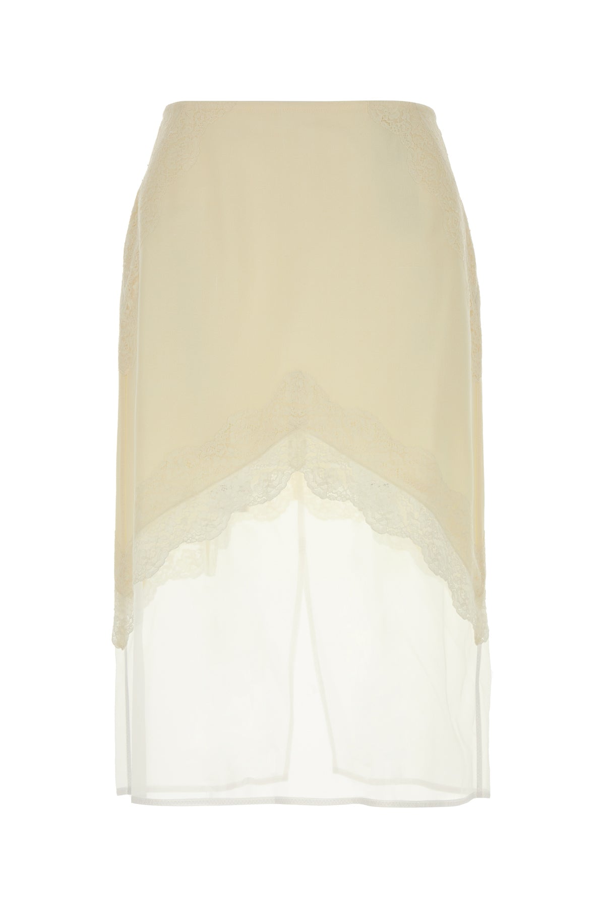 Gonna realizzata in misto viscosa con inserto in organza a contrasto sul fondo.