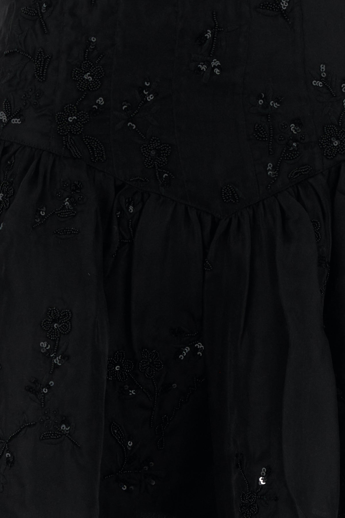 Gonna a palloncino realizzata in organza caratterizzata da ricami con perline su tutta la superficie.