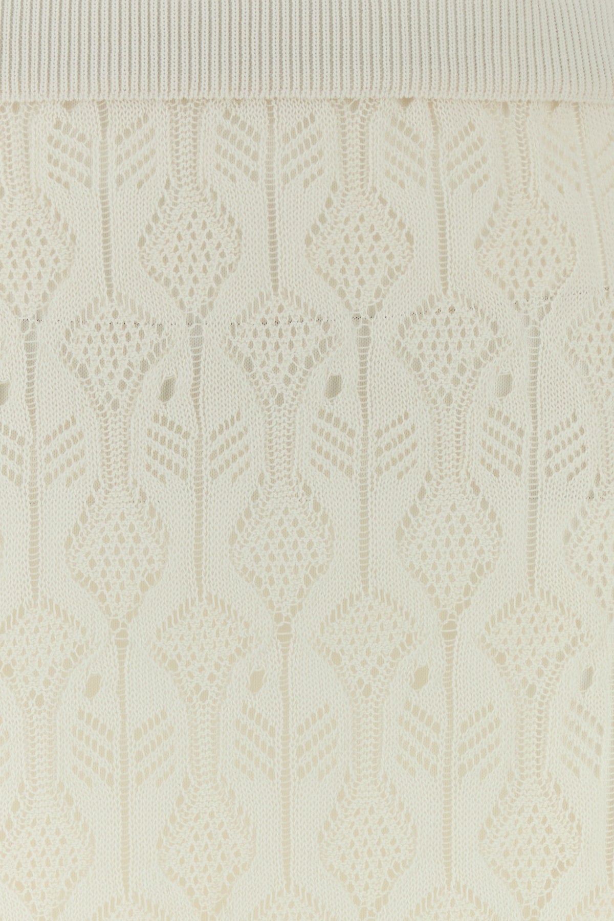 Gonna realizzata in pizzo di cotone e seta caratterizzata da spacchi laterali sul fondo.