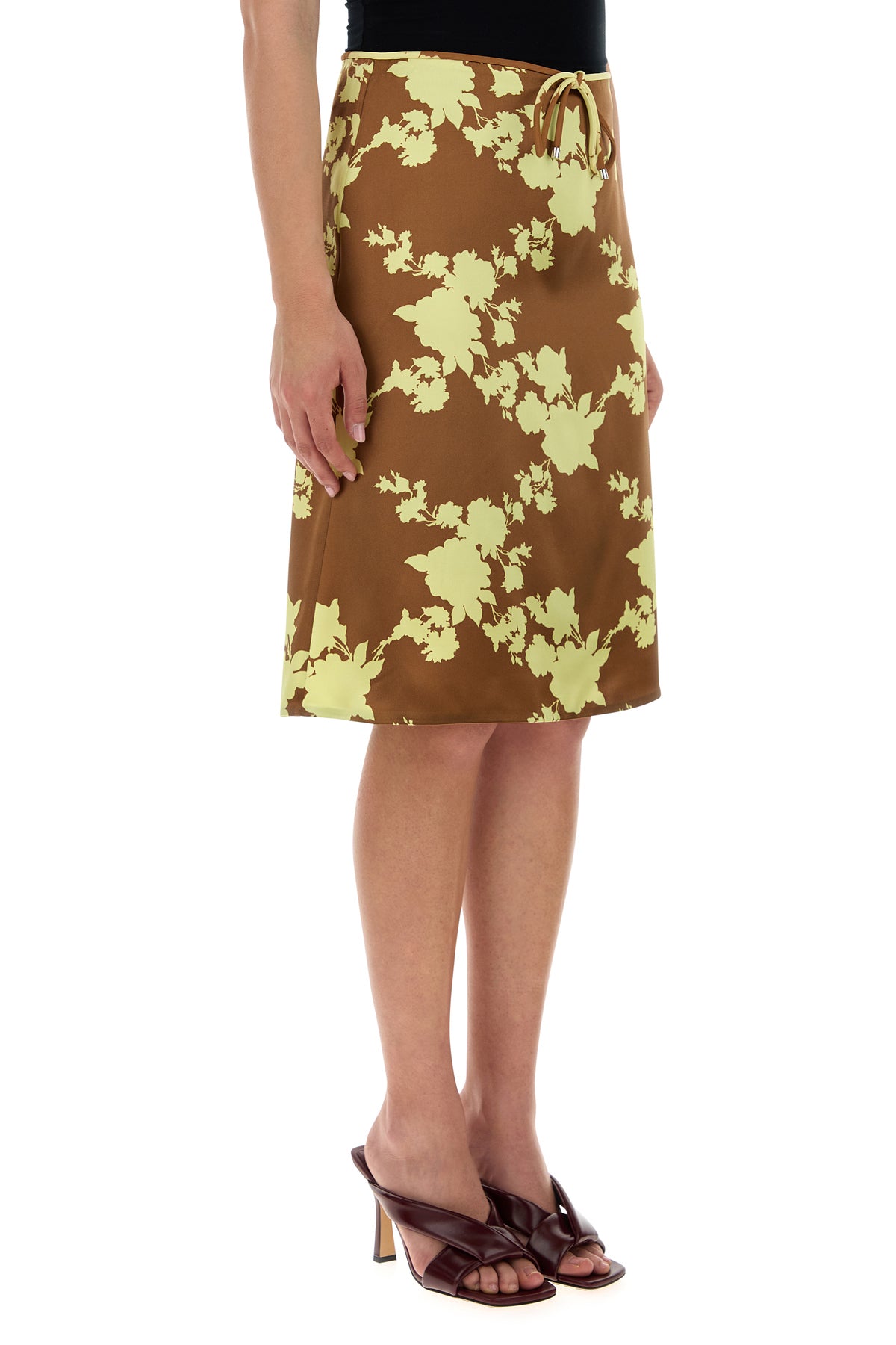 Gonna svasata realizzata in raso di pura seta caratterizzata da particolare stampa su tutta la superficie.