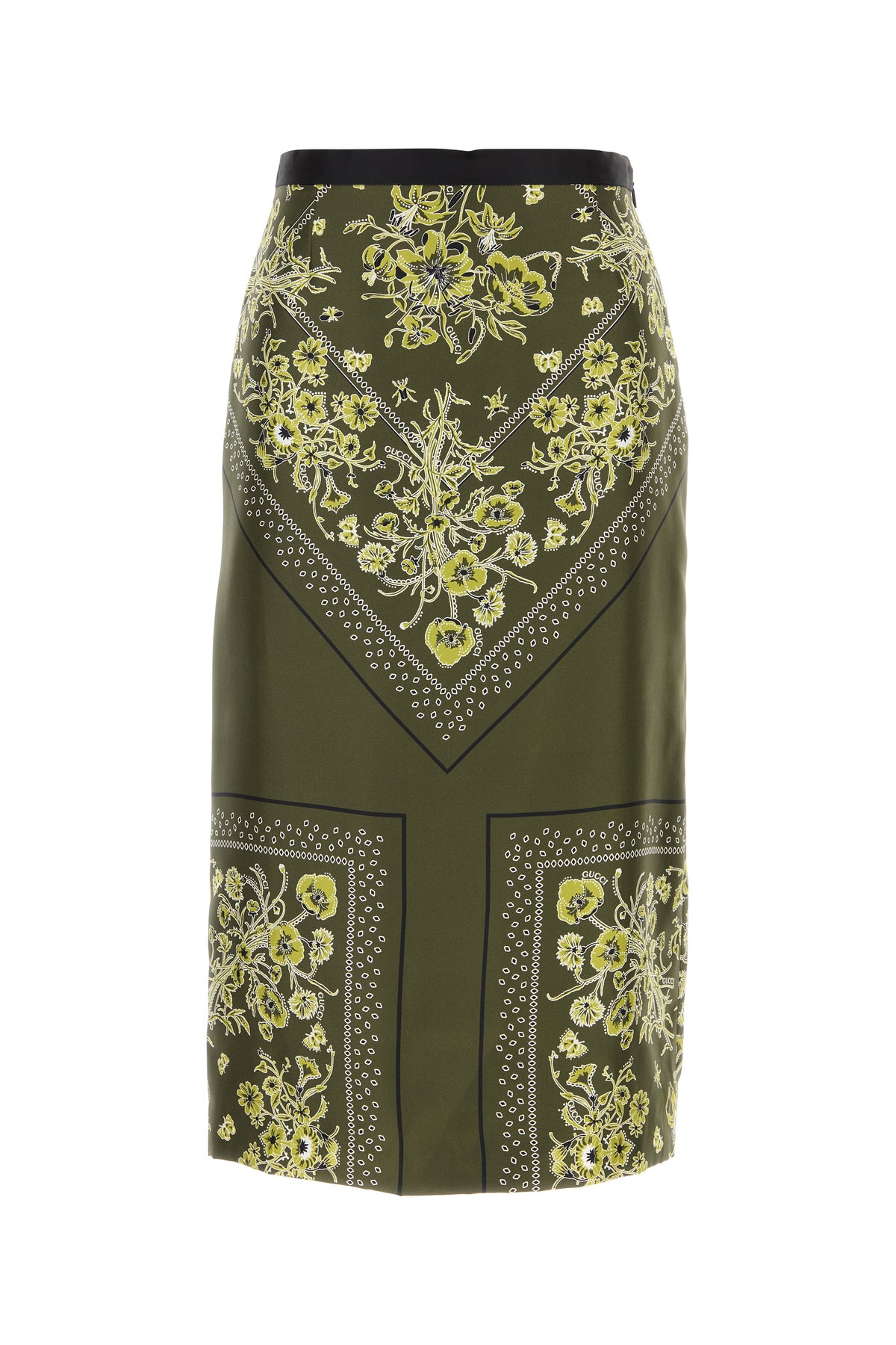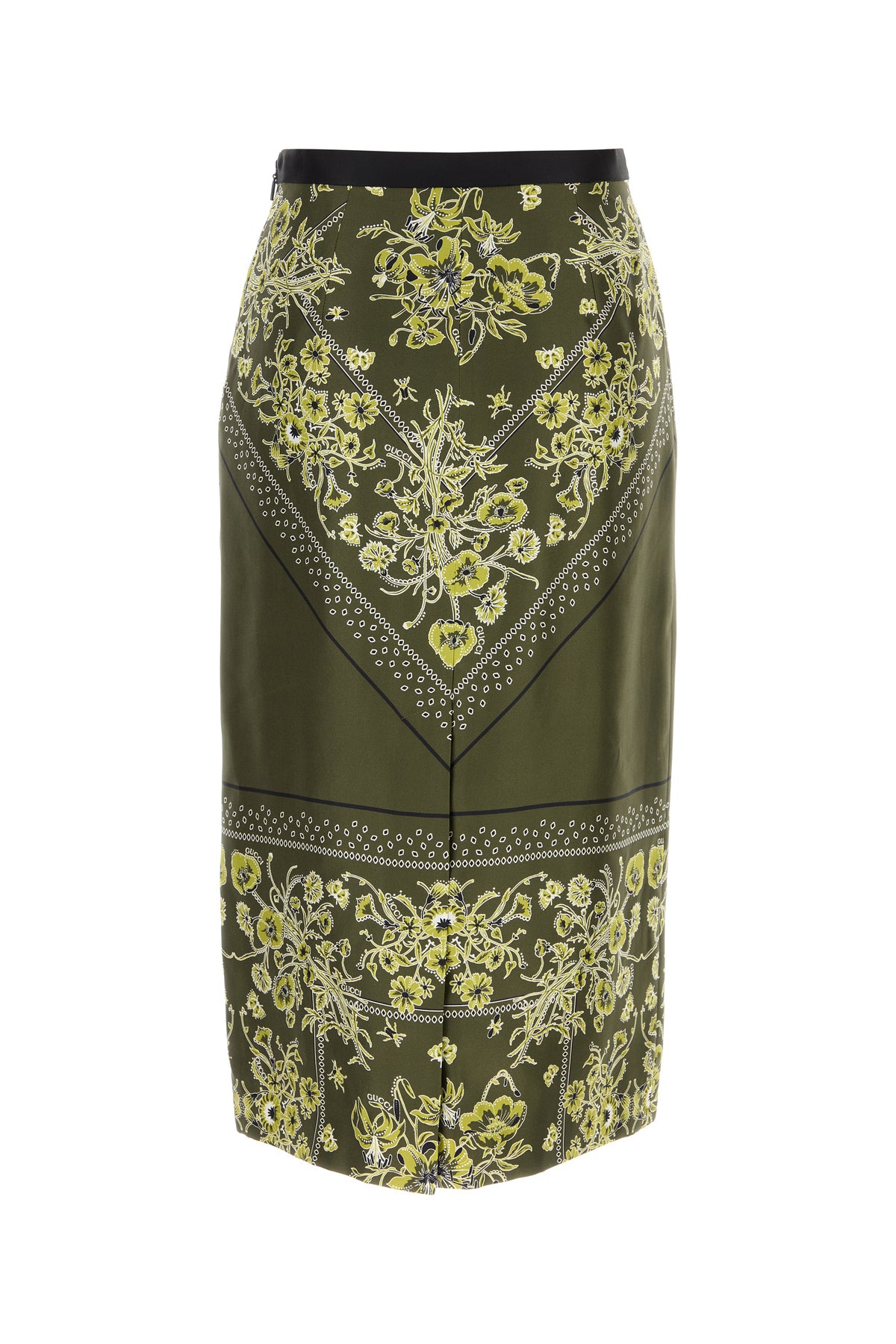Gonna midi realizzata in pura seta caratterizzata da particolare ricamo floreale su tutta la superficie.