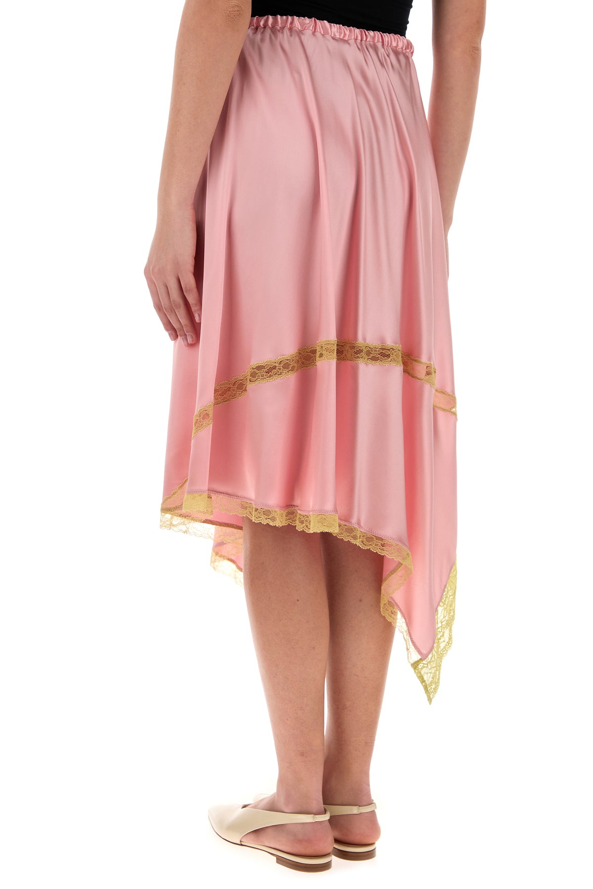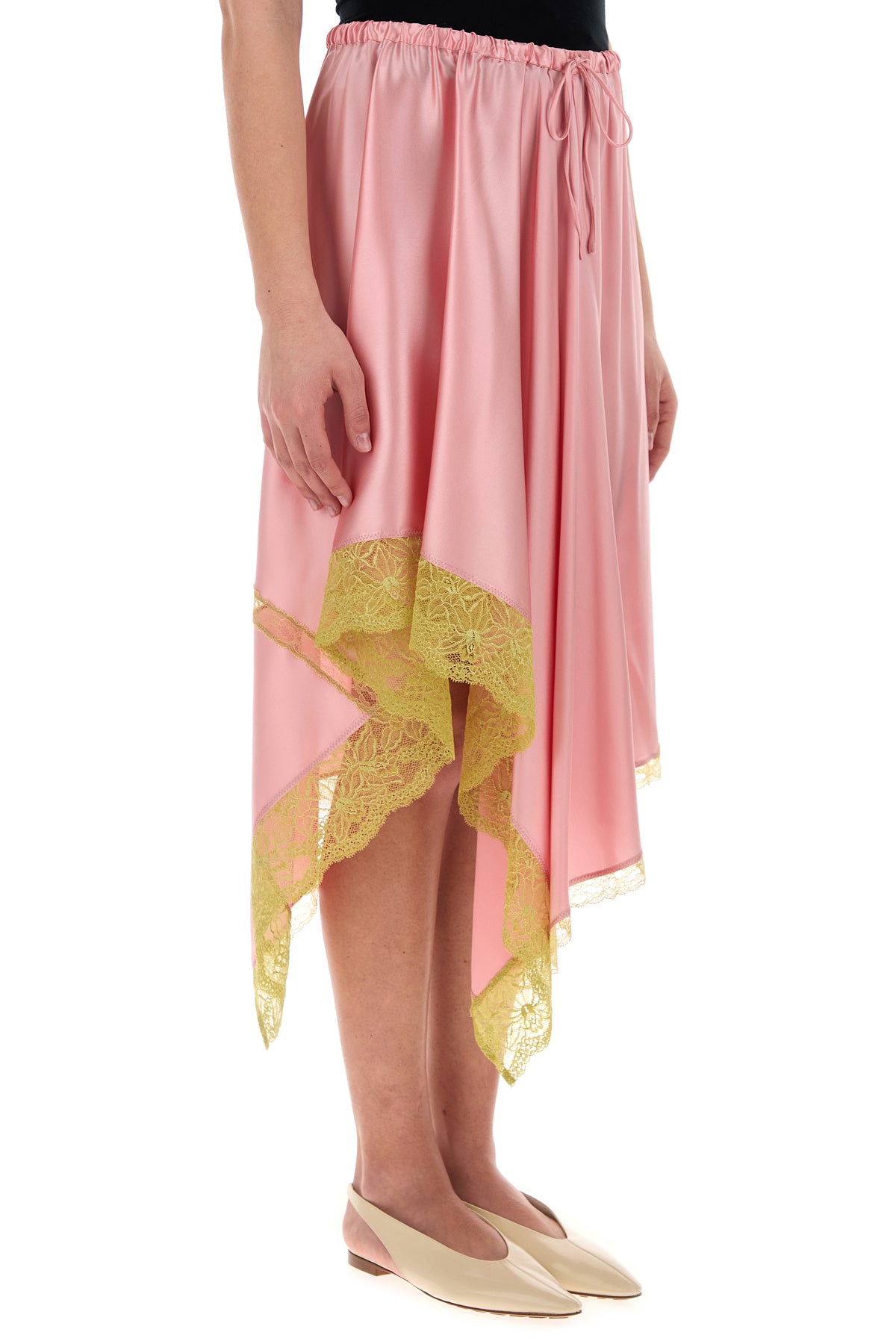 Gonna realizzata in raso di seta stretch con inserto in pizzo a contrasto sul fondo.