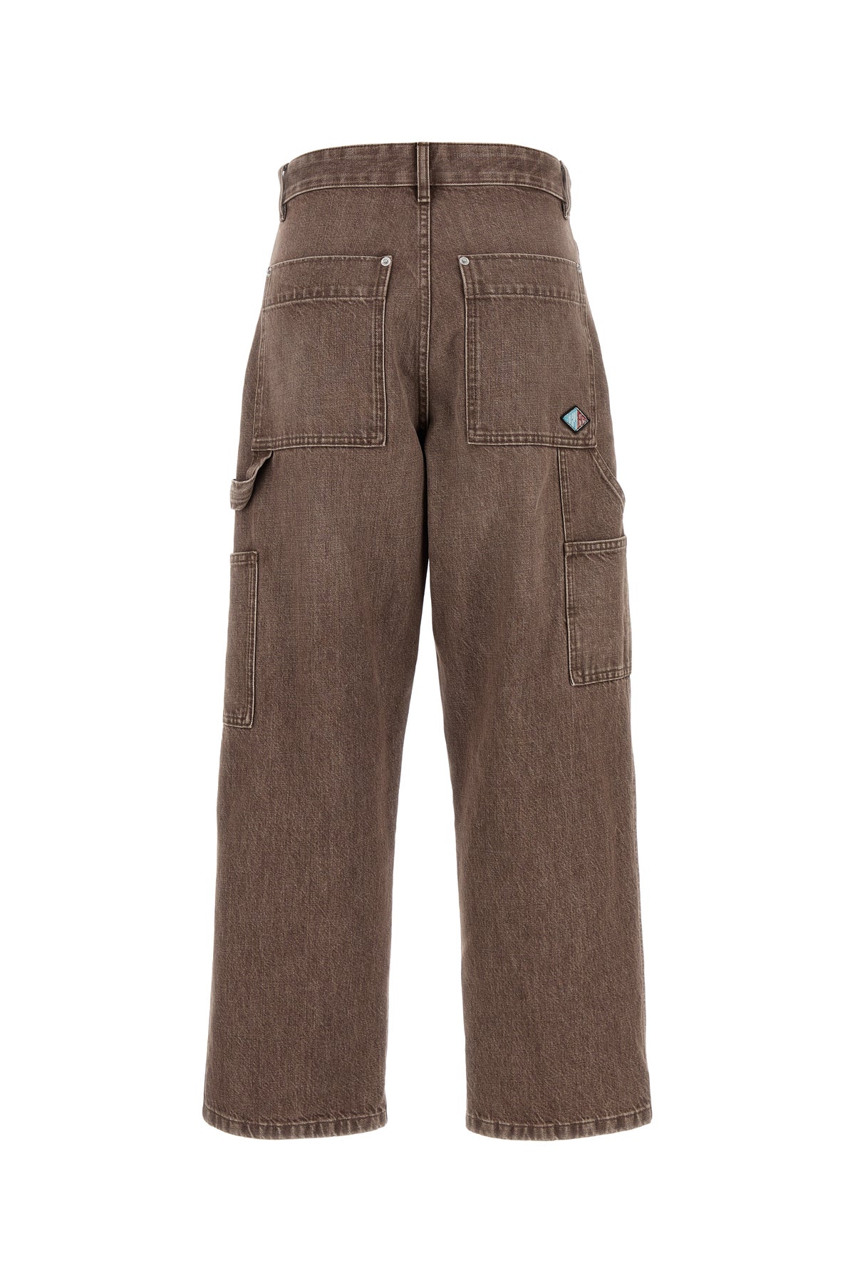 Jeans dalla gamba ampia realizzati in denim di puro cotone slavato arricchiti da applicazione logata a contrasto sul retro.