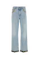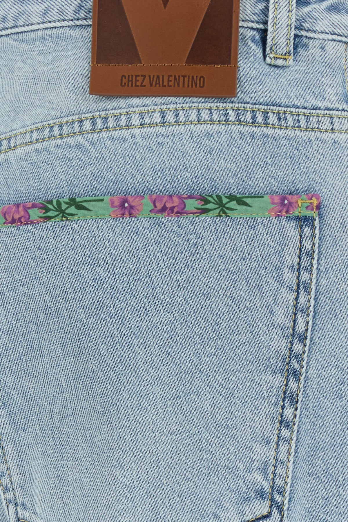 Jeans realizzato in denim di puro cotone arricchito da particolari applicazioni sulle profilature.