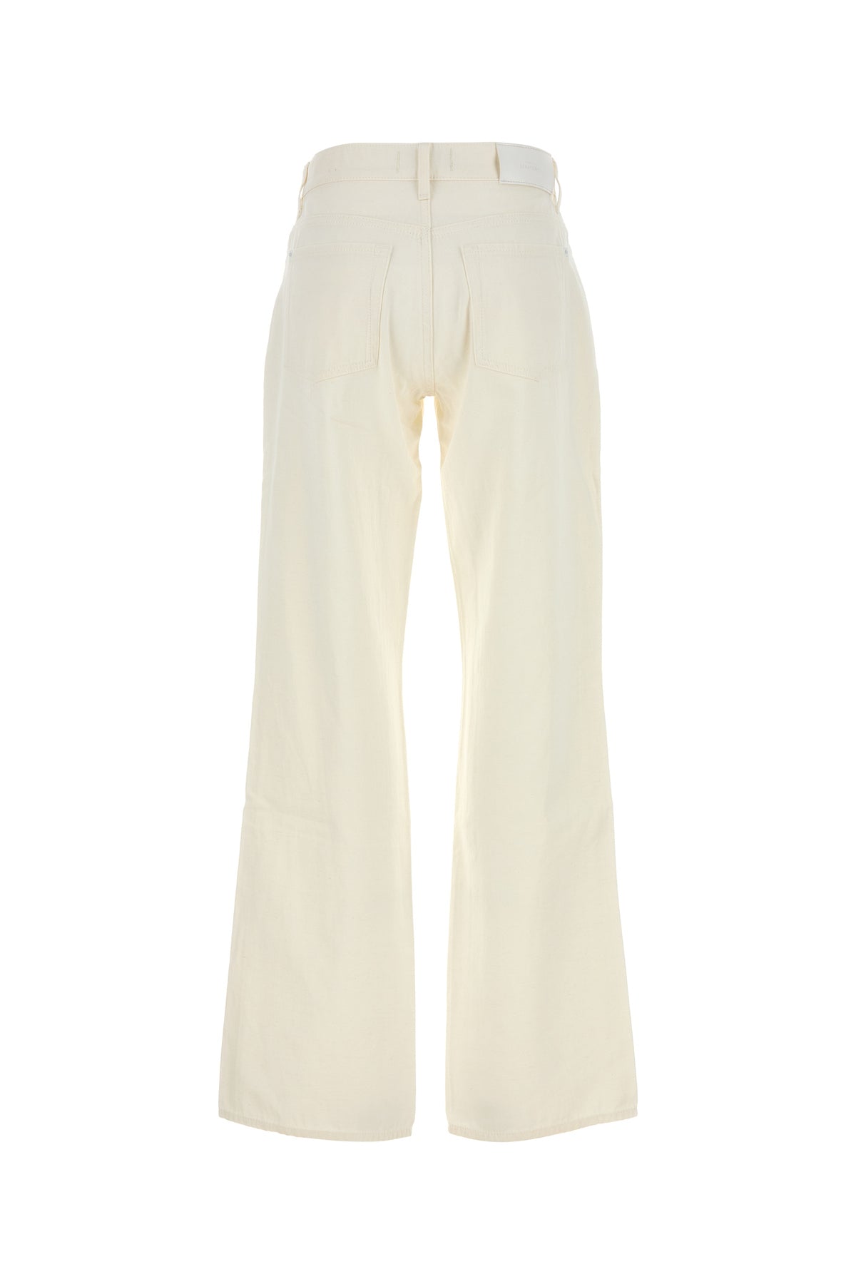 Jeans realizzato in denim di cotone e lino arricchito da etichetta logata tonale sul retro.