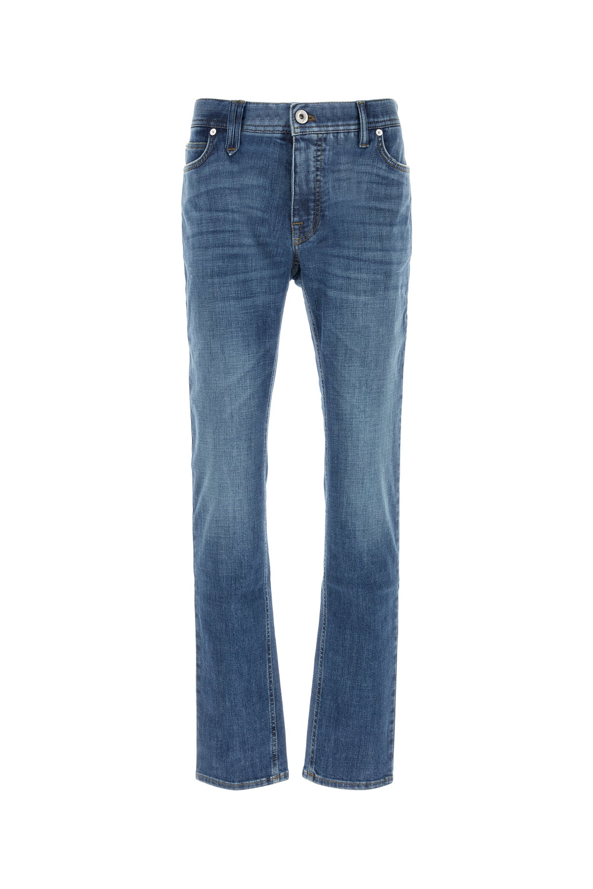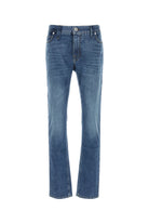 Jeans realizzati in denim di cotone stretch slavato arricchiti da etichetta logata a contrasto sul retro.