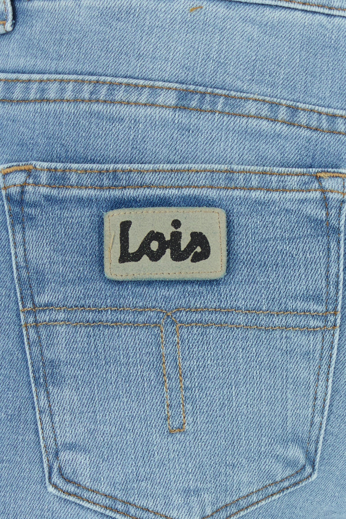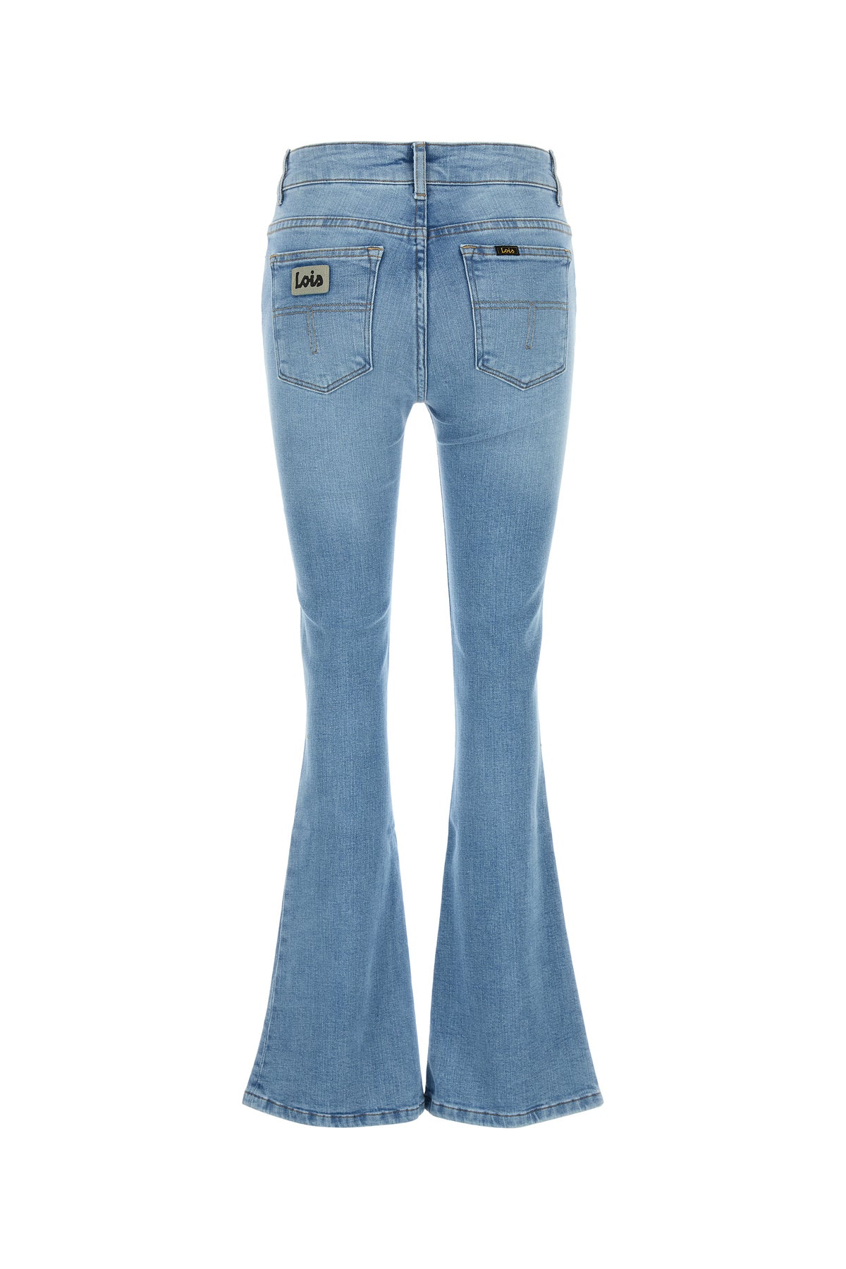 Jeans a zampa realizzati in denim stretch slavato arricchiti da etichetta logata sulla parte frontale e sul retro.