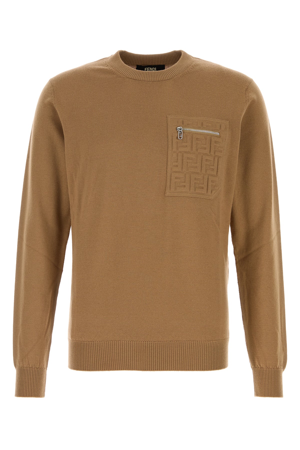 Maglione realizzato in cotone stretch caratterizzato da ricamo FF tonale sul taschino sul petto.