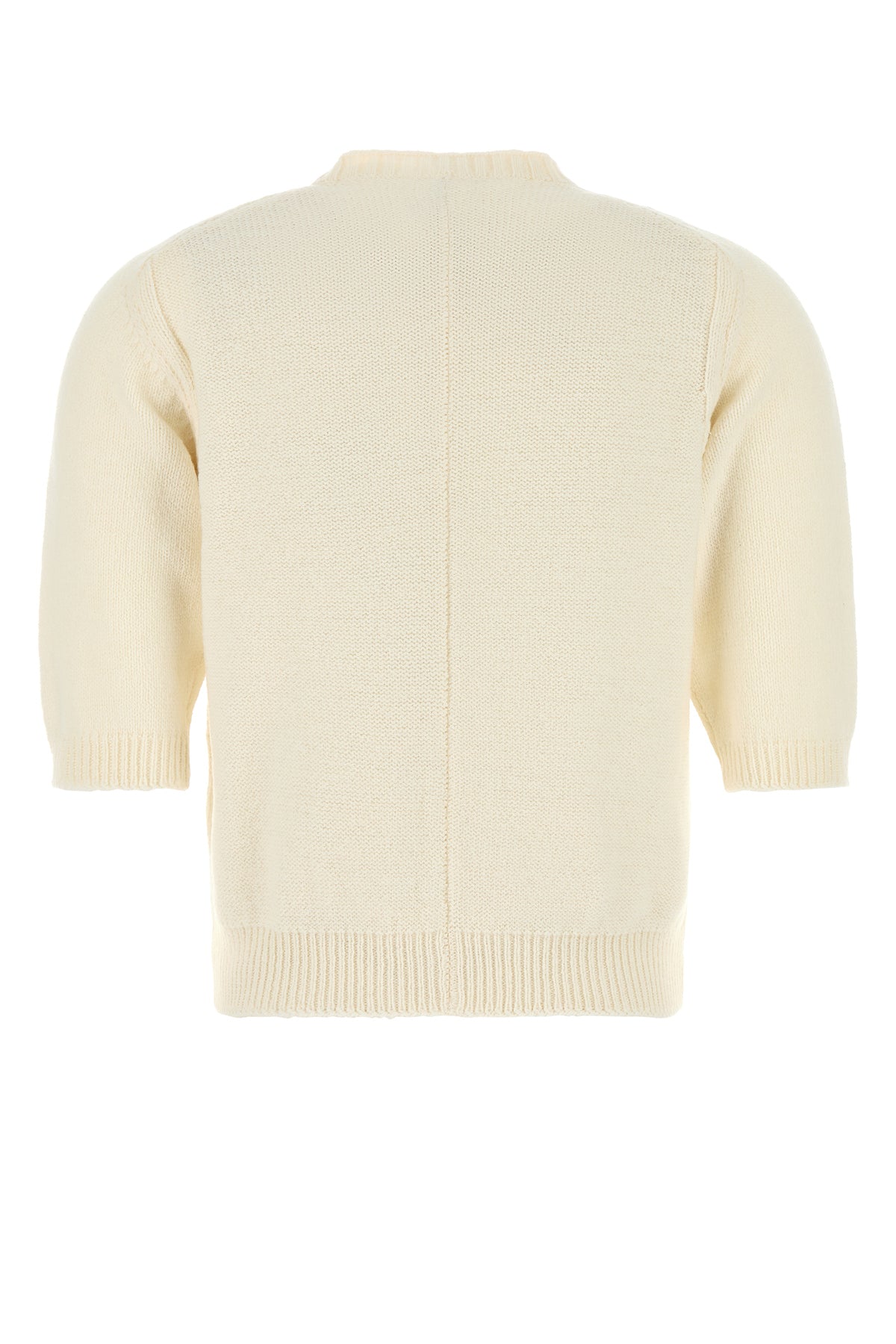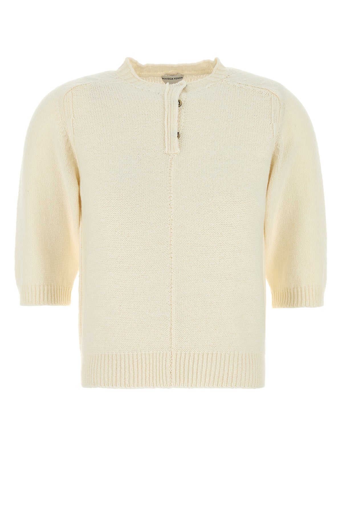 Maglione a maniche corte realizzato in pura lana caratterizzato da chiusura parziale con bottoni.