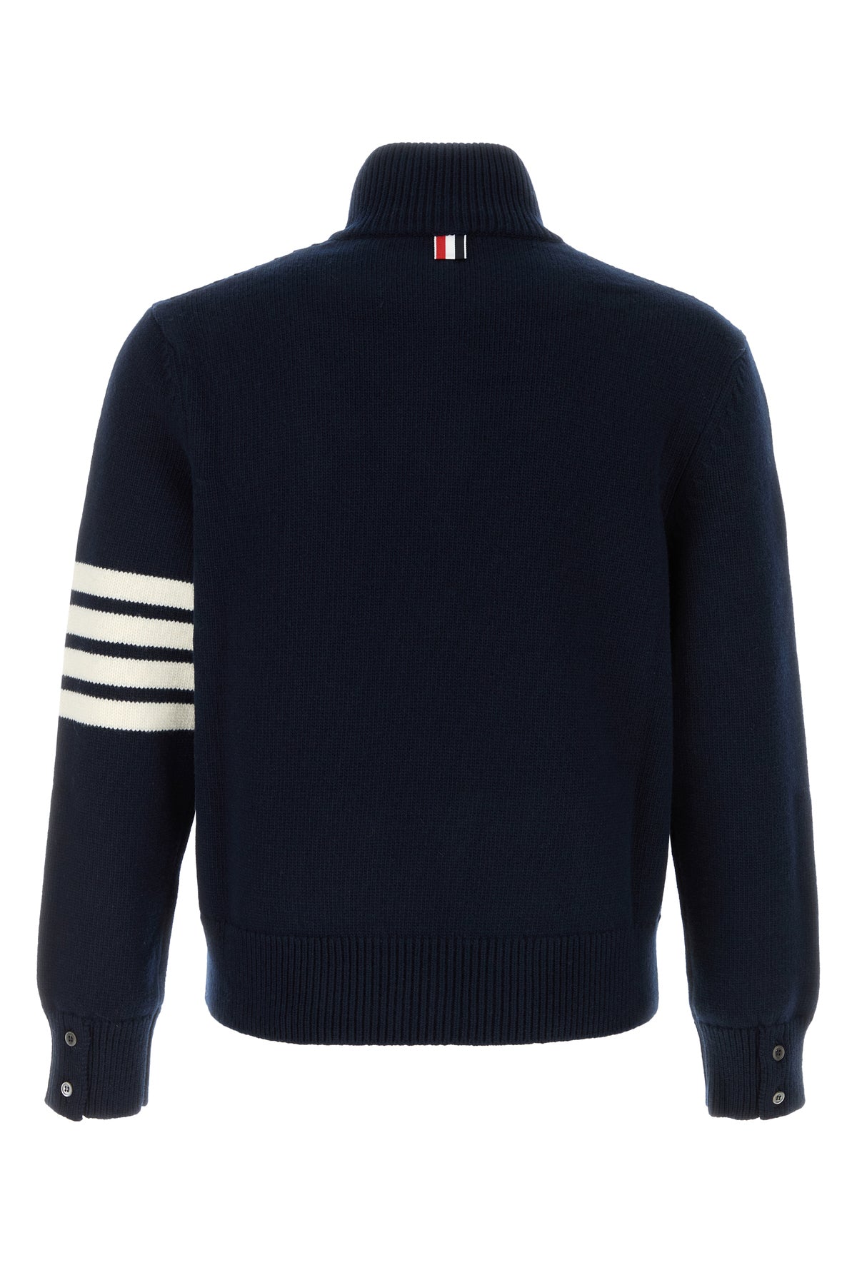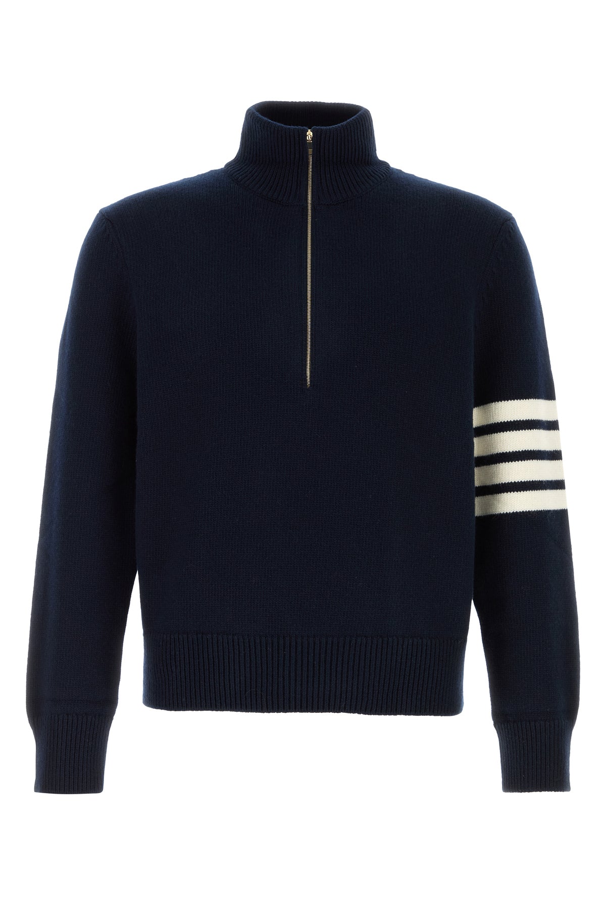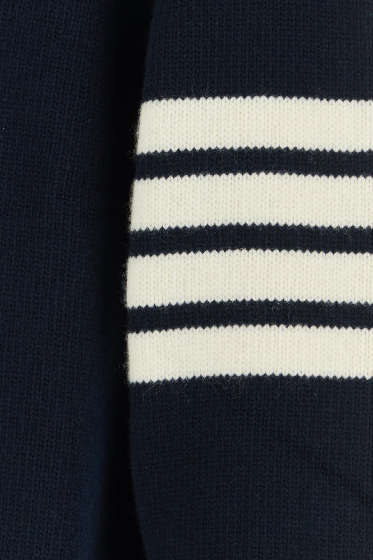 Maglione realizzato in pura lana vergine caratterizzato da bande a contrasto sulla manica arricchito da iconica etichetta tricolore sul retro.