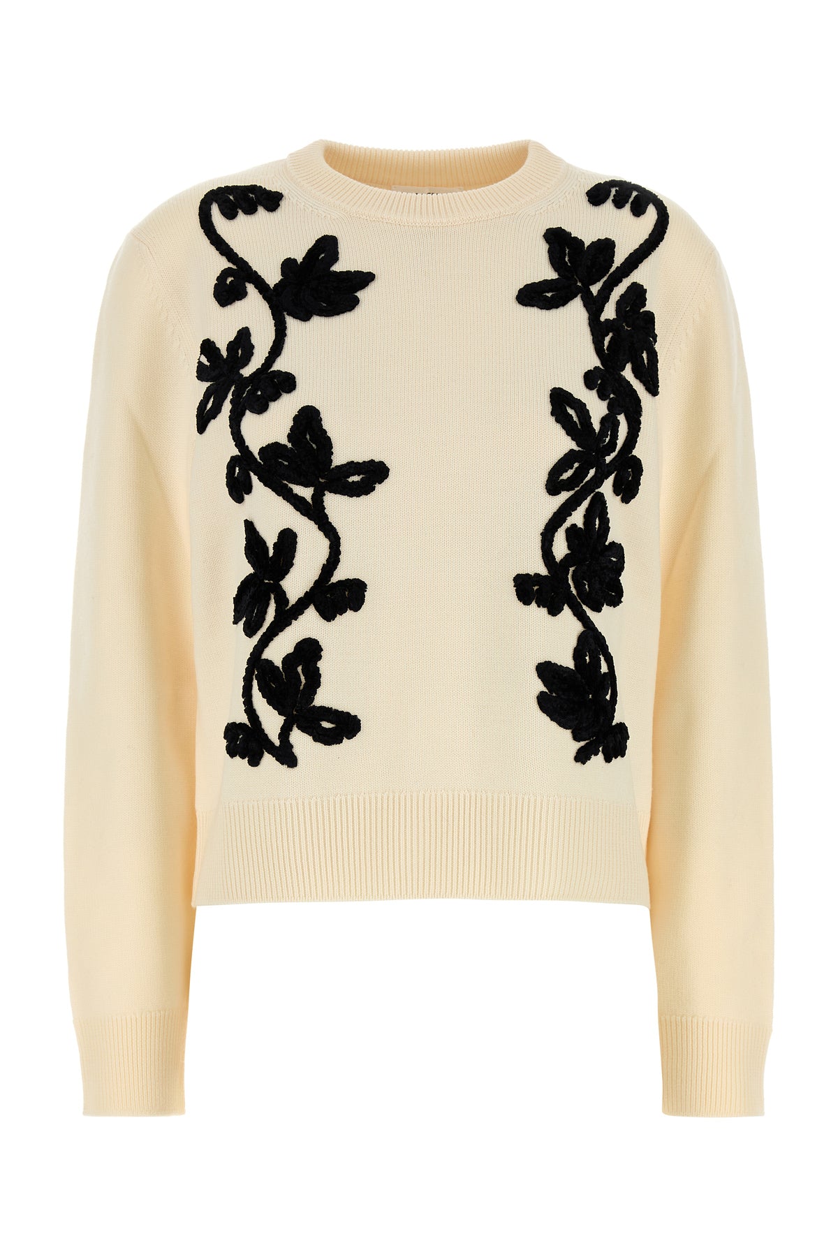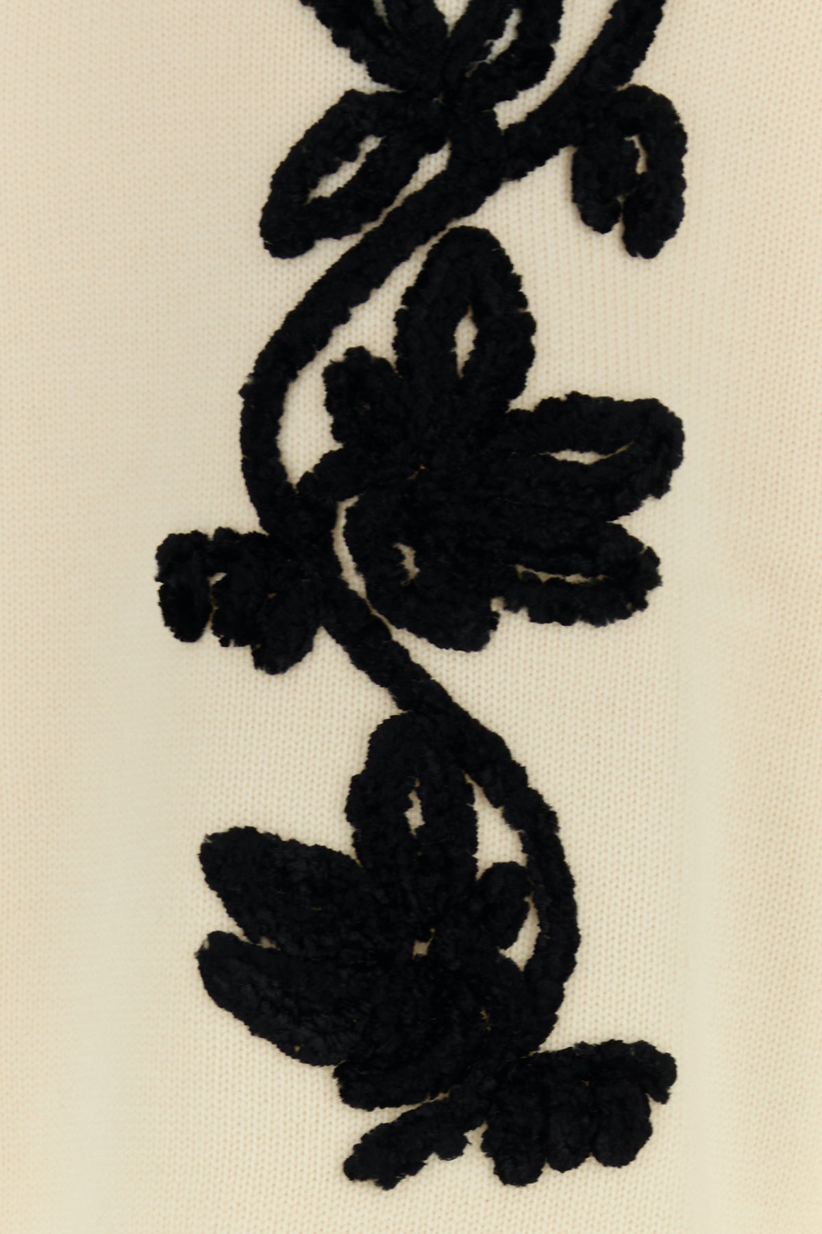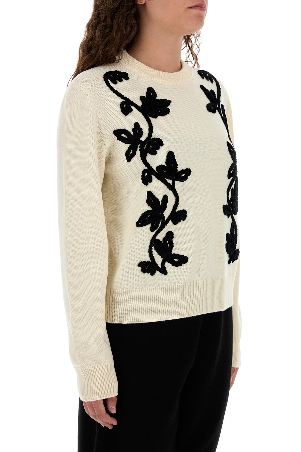 Maglione realizzato in pura lana vergine caratterizzato da ricamo floreale a contrasto sulla parte frontale.