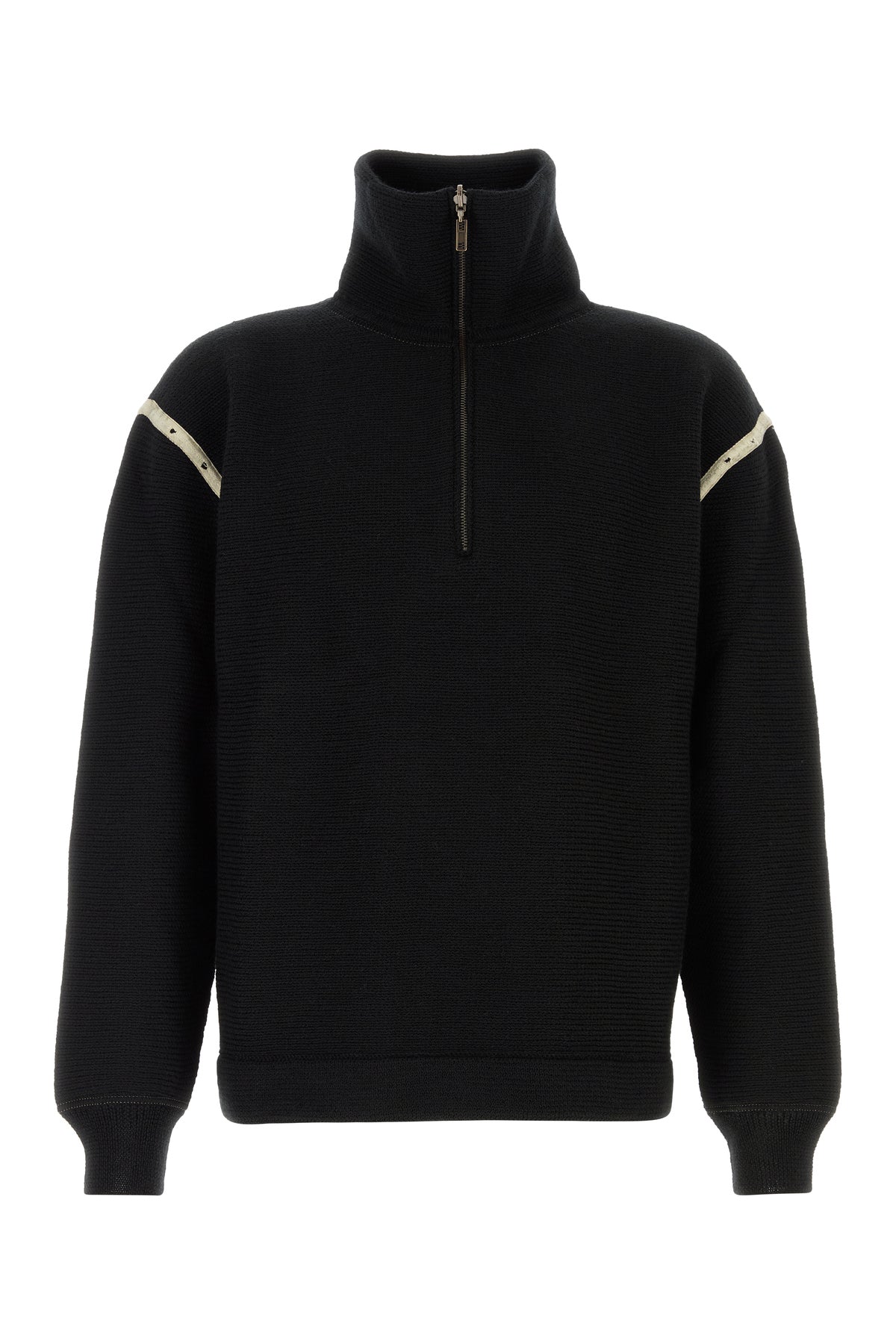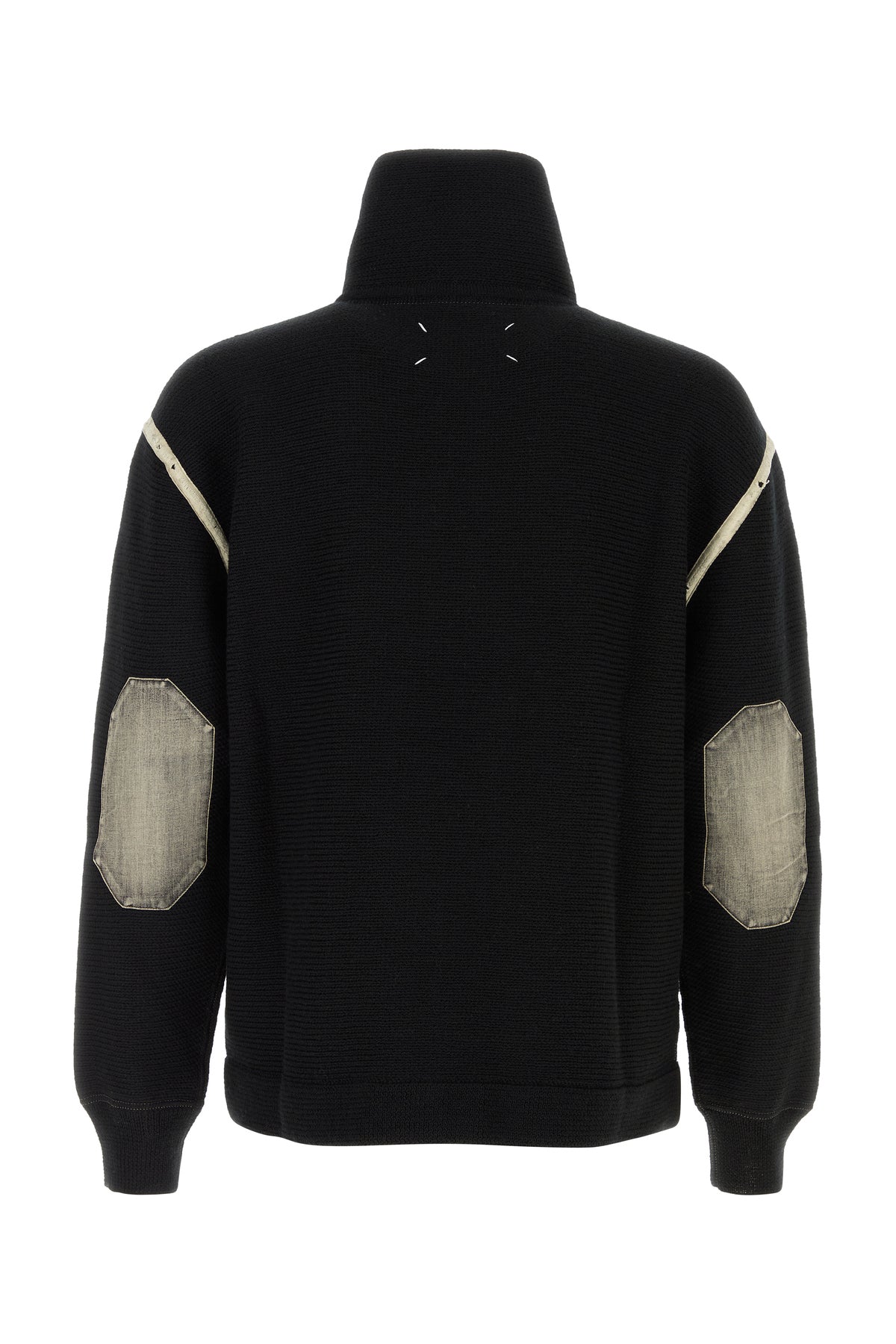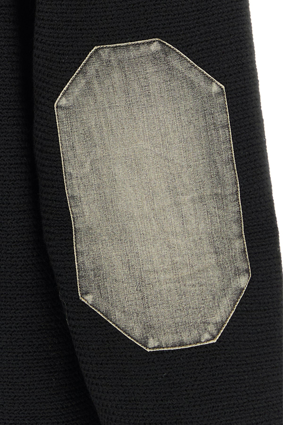 Maglione realizzato in pura lana vergine arricchito da applicazioni a contrasto sulle maniche.