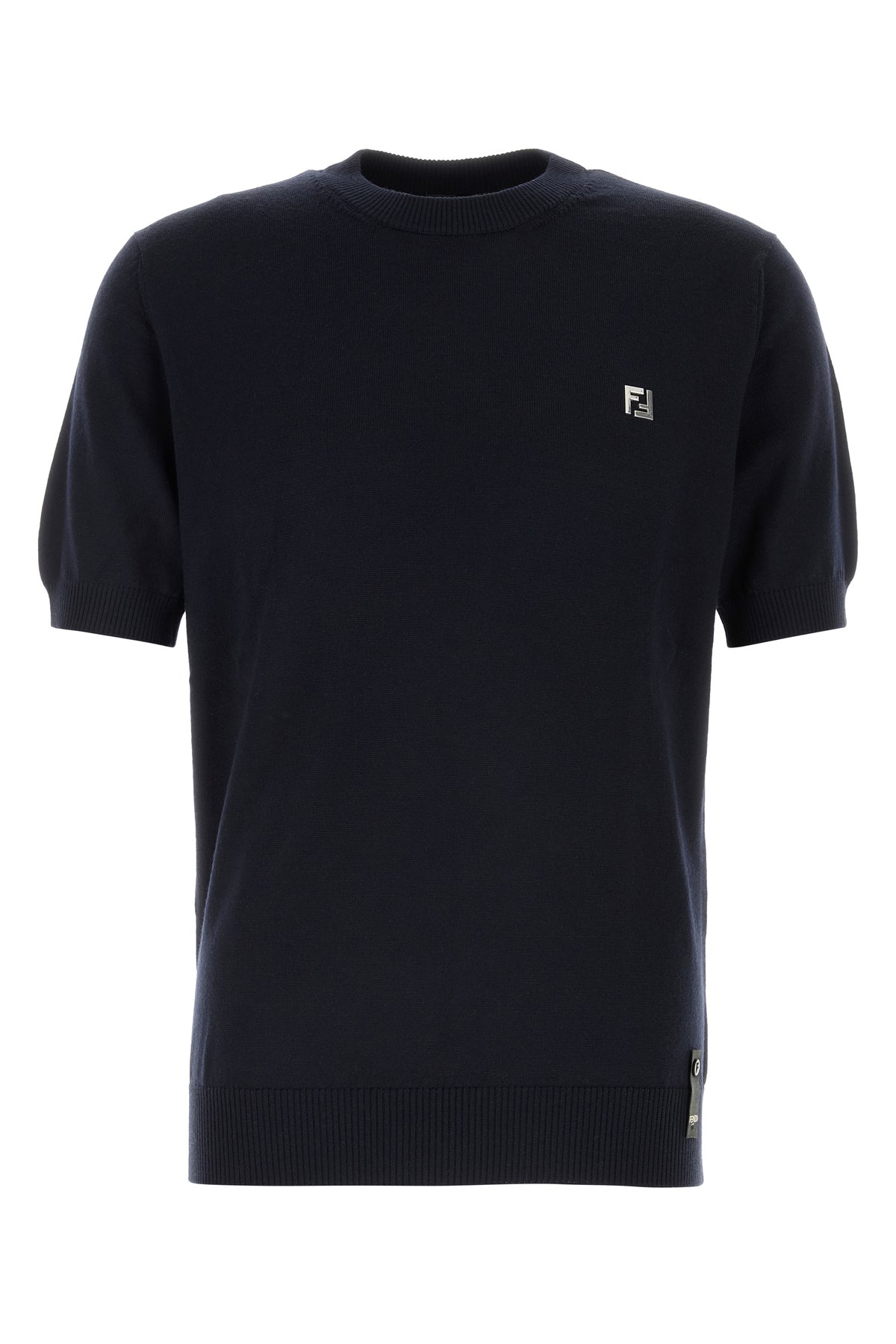 Maglione a maniche corte realizzato in lana vergine stretch arricchito da dettaglio metallico FF sul petto.