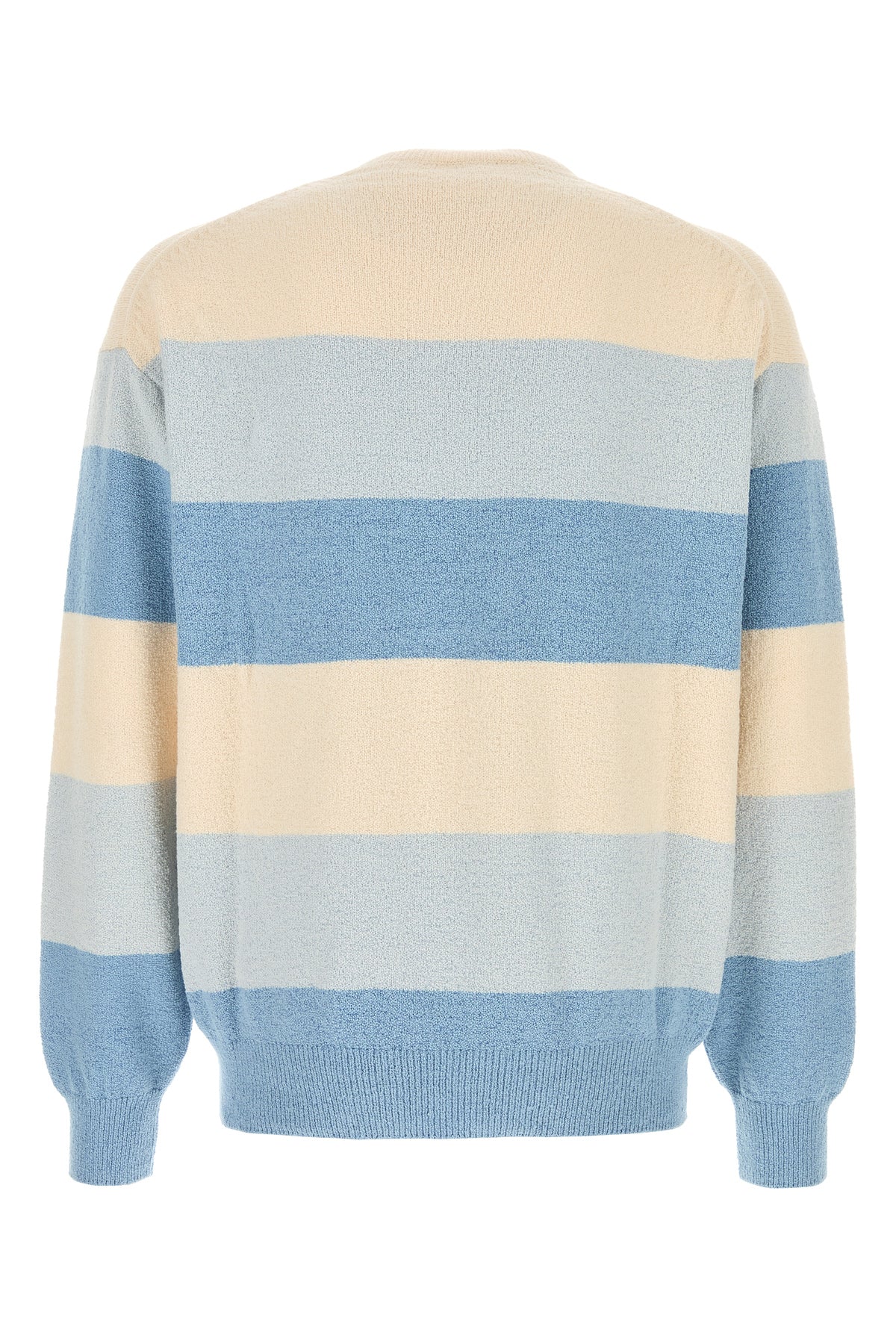 Maglione realizzato in misto cotone stretch caratterizzato da stampa a righe su tutta la superficie e logo ricamato sul petto.