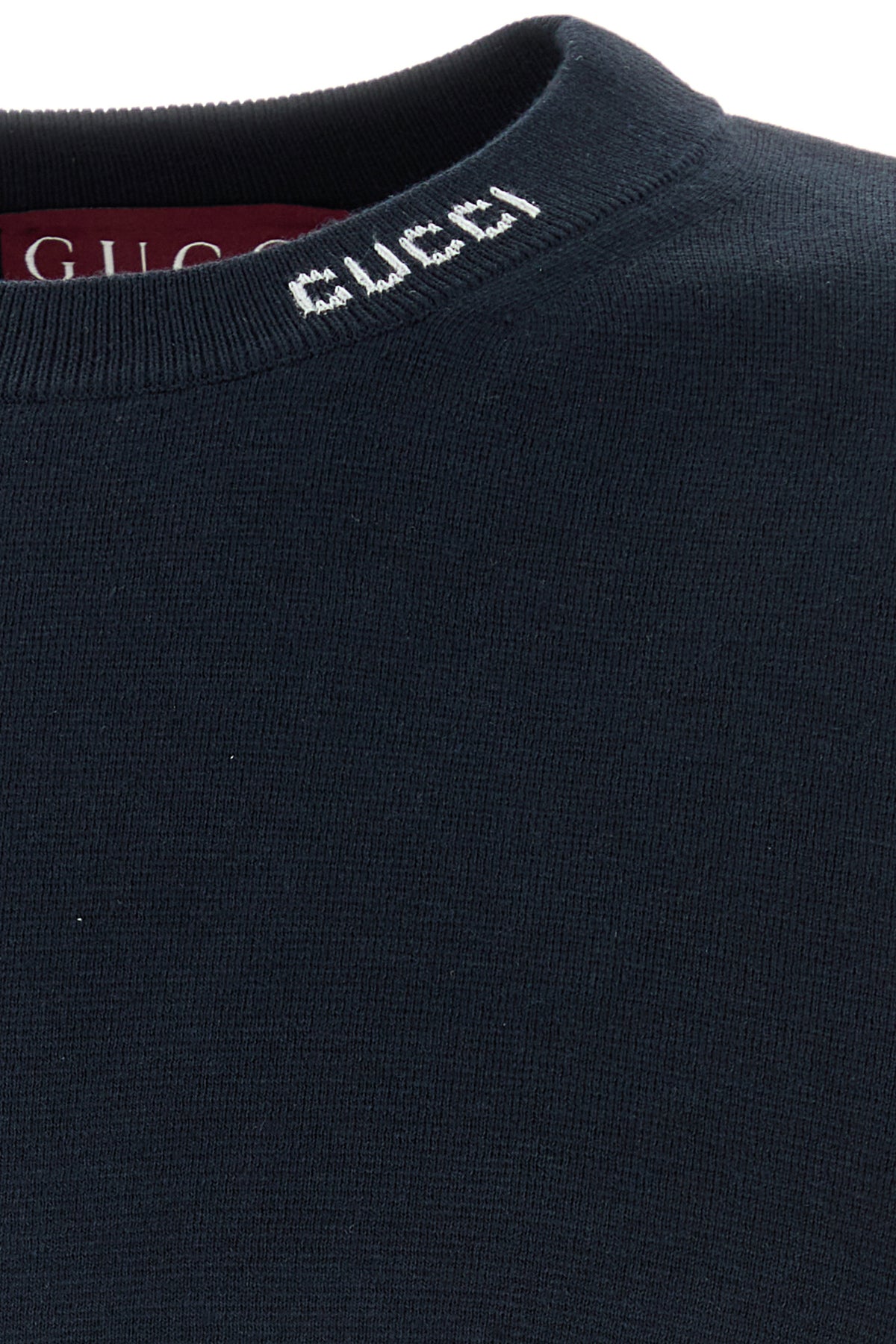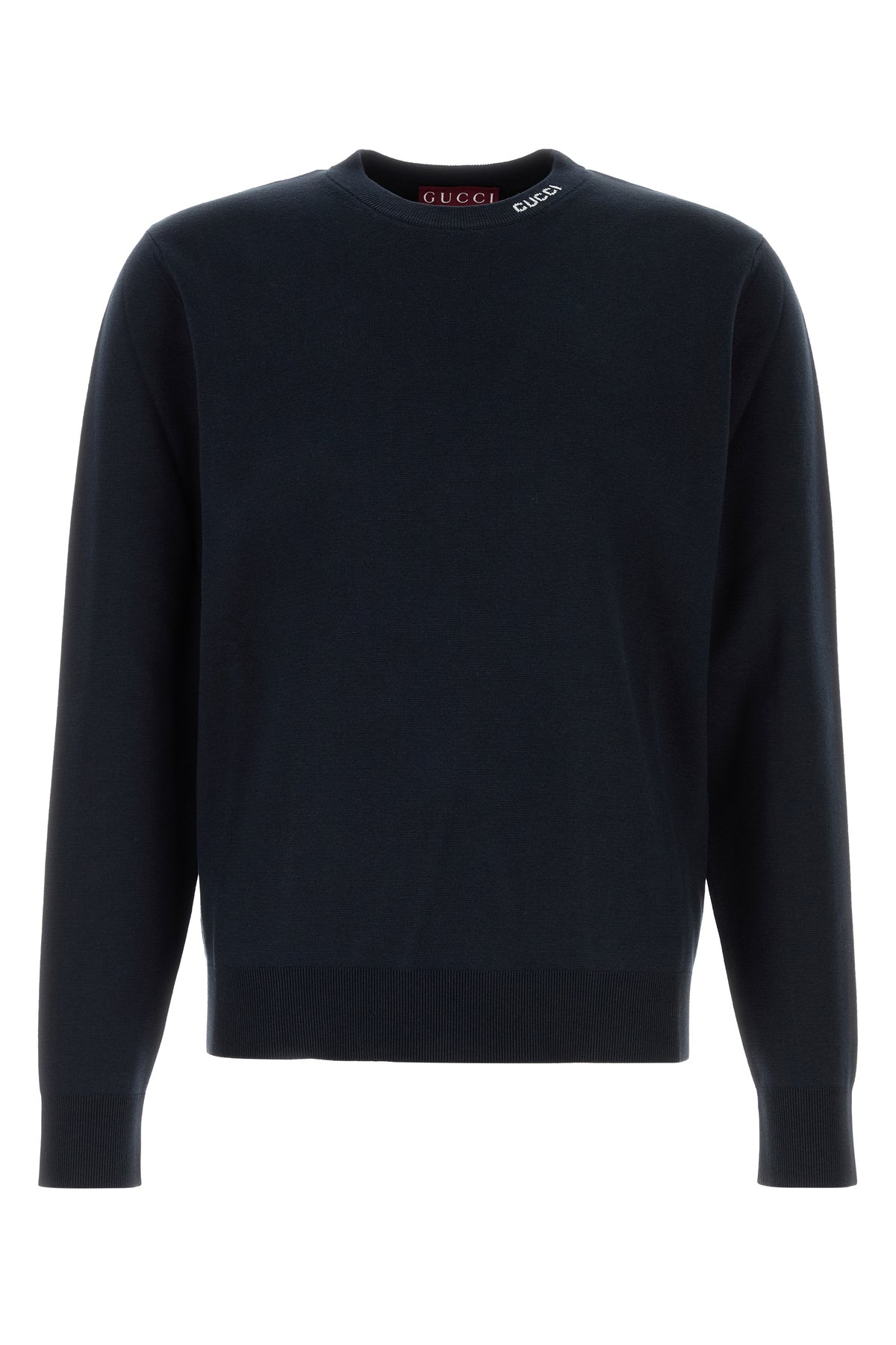 Maglione realizzato in seta e cotone caratterizzato ad logo ricamato a contrasto sul girocollo.