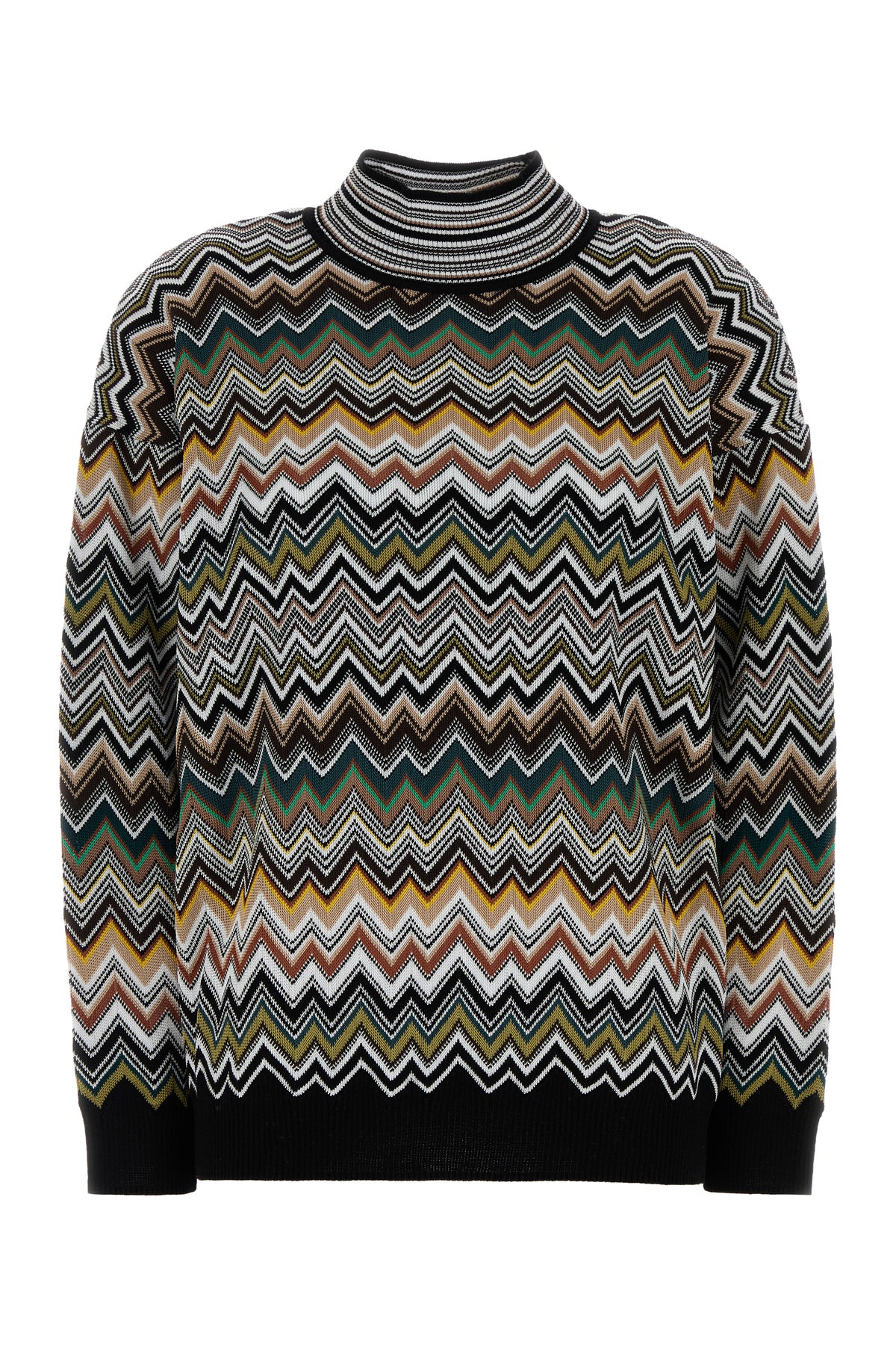 Maglione realizzato in misto viscosa caratterizzato da ricamo geometrico su tutta la superficie.
