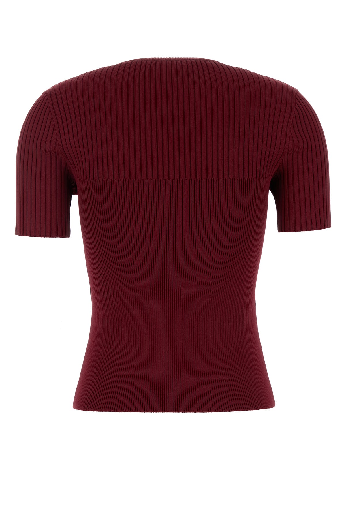Maglione a maniche corte realizzato in misto viscosa stretch caratterizzato da logo ricamato a contrasto sul petto.