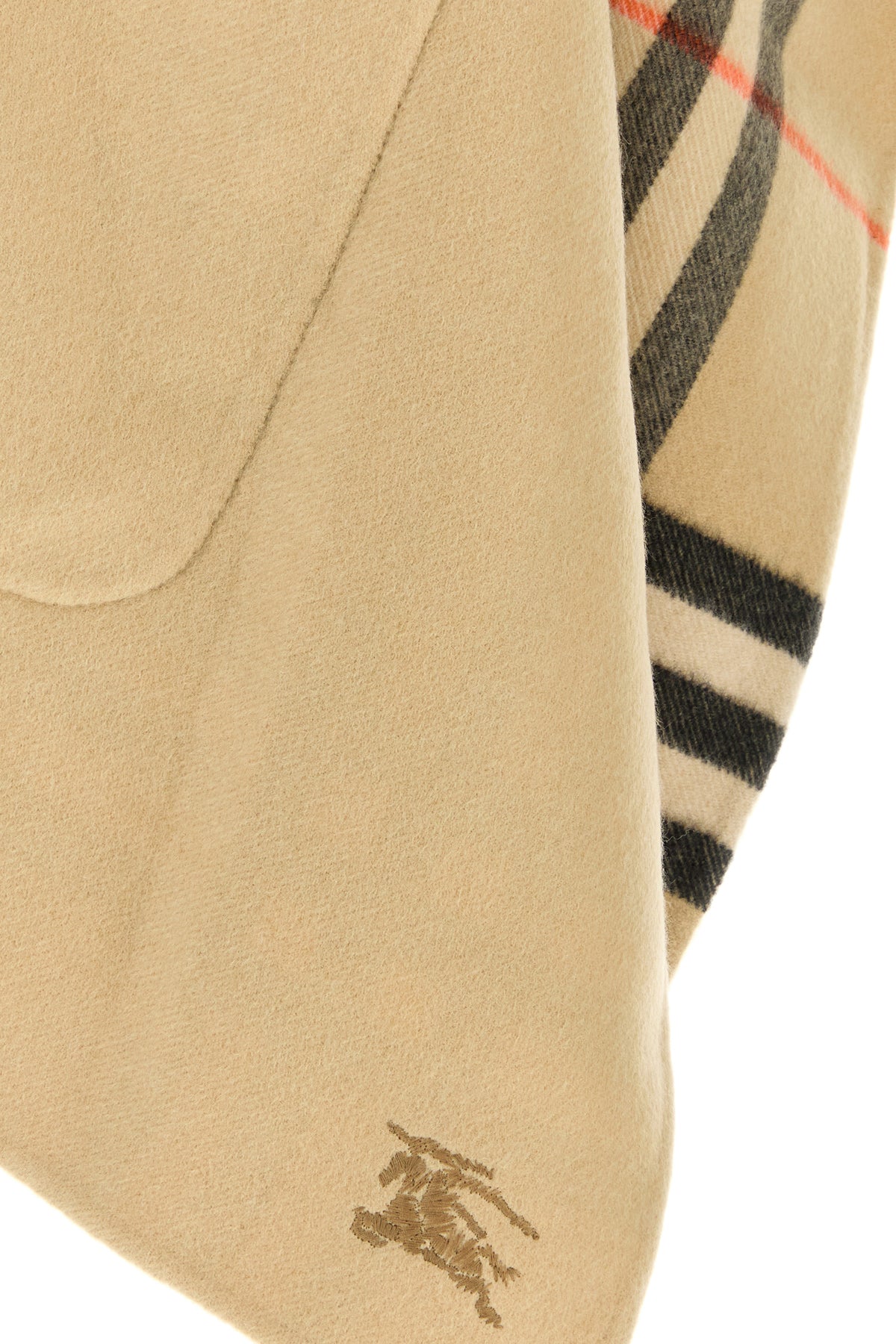 Mantella reversibile realizzata in puro cashmere caratterizzata da ricamo Equestrian Knight sul fondo.