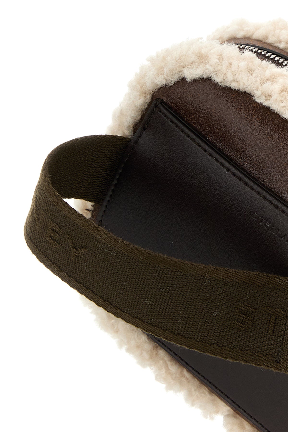 Marsupio realizzato in alter mat con inserti in eco pelliccia sulle profilature arricchito da logo in borchie metalliche sulla parte frontale.