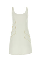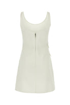 Mini abito realizzato in misto poliestere arricchito da applicazioni in tessuto tonale sui lati.