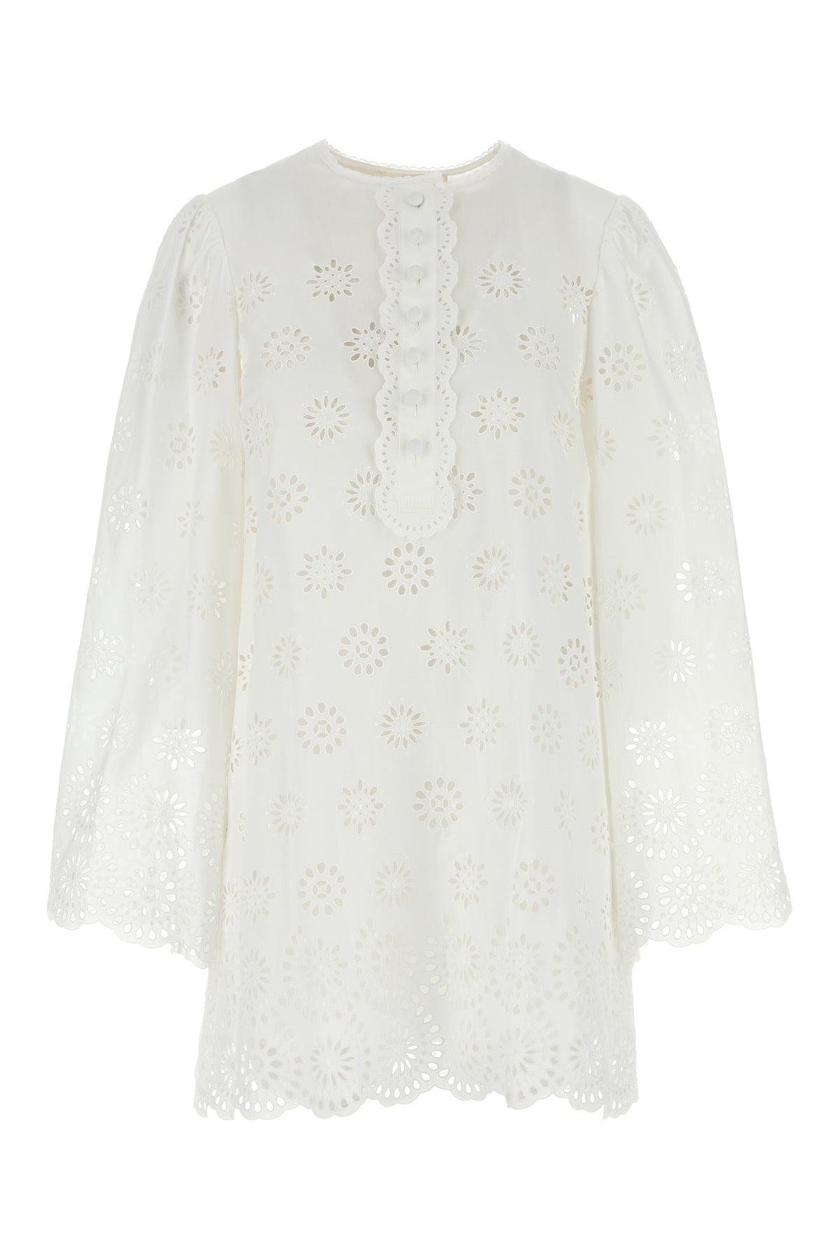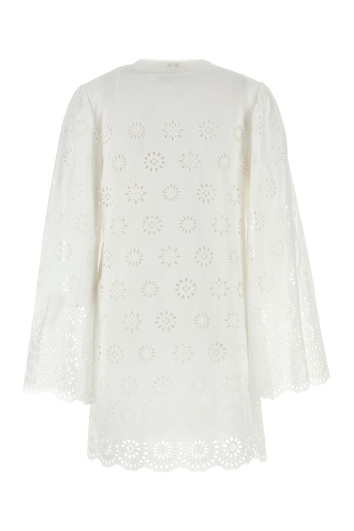 Mini abito realizzato in pizzo sangallo caratterizzato da logo ricamato tonale sulla parte frontale.