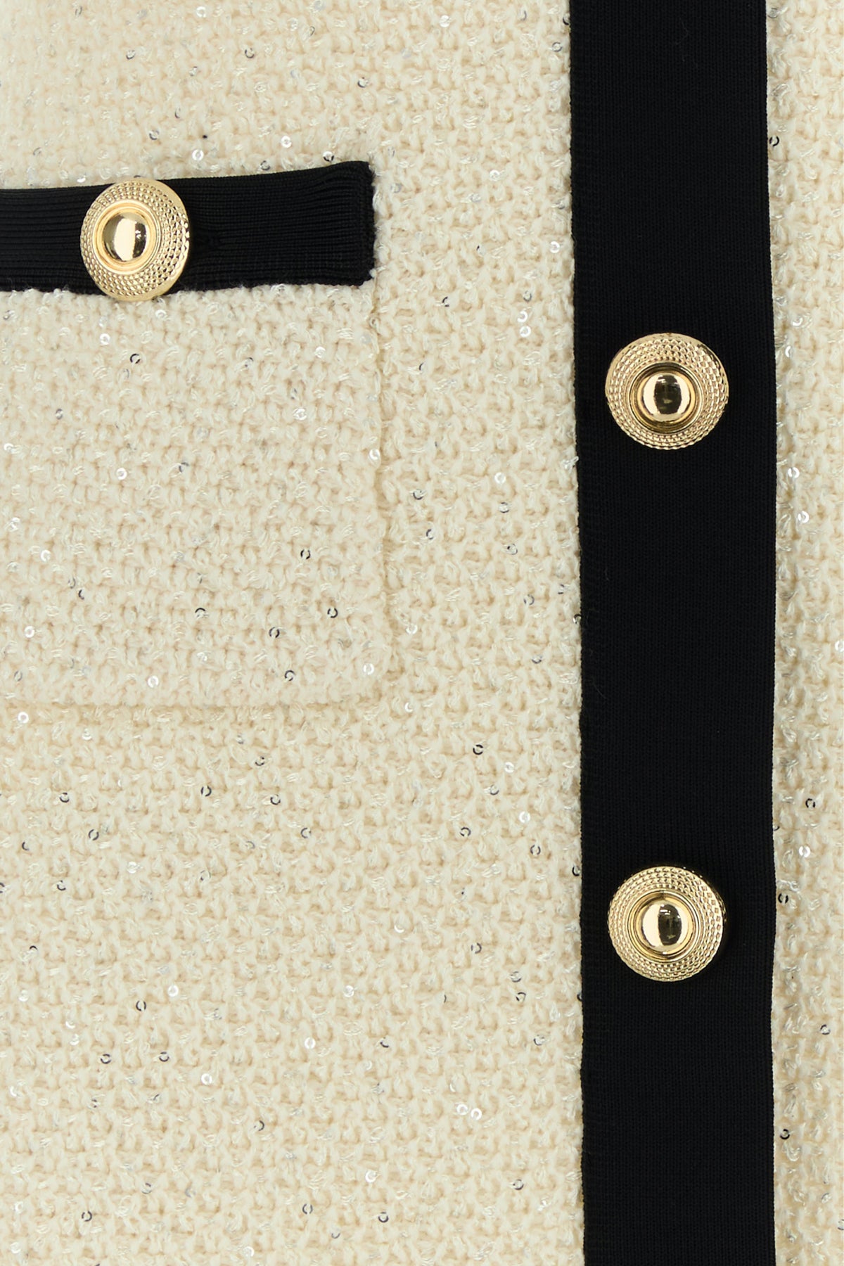 Minigonna realizzata in bouclé arricchita da paillettes su tutta la superficie.