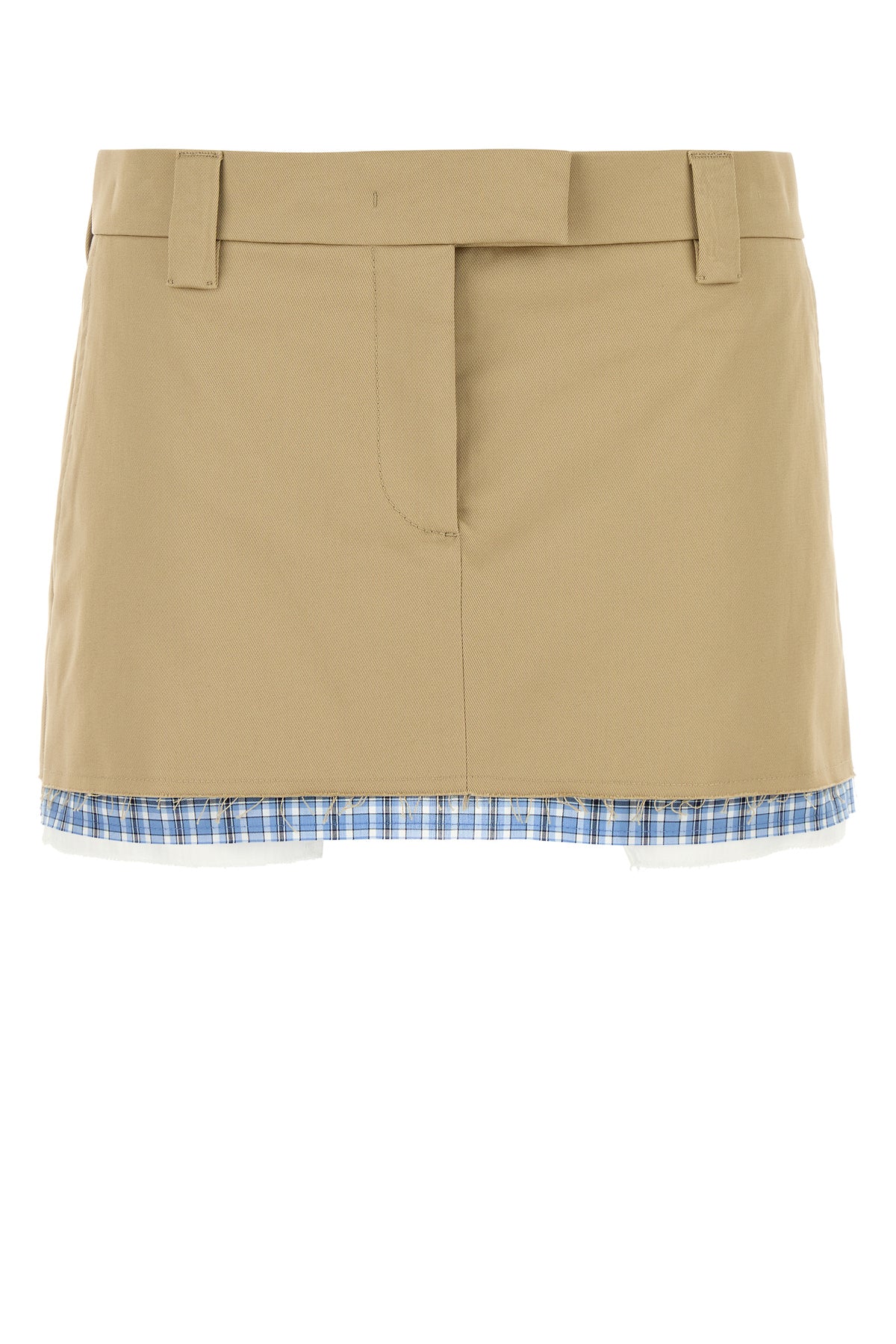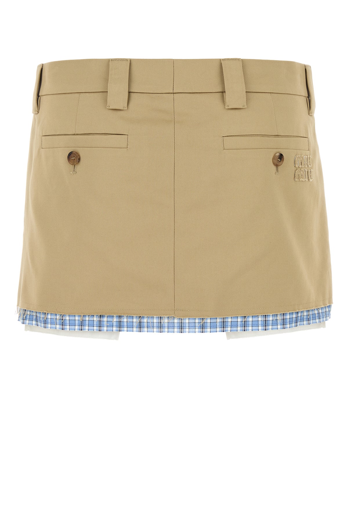 Minigonna realizzata in puro cotone con inserti in popeline a quadri arricchita da applicazione logata tonale sul retro.
