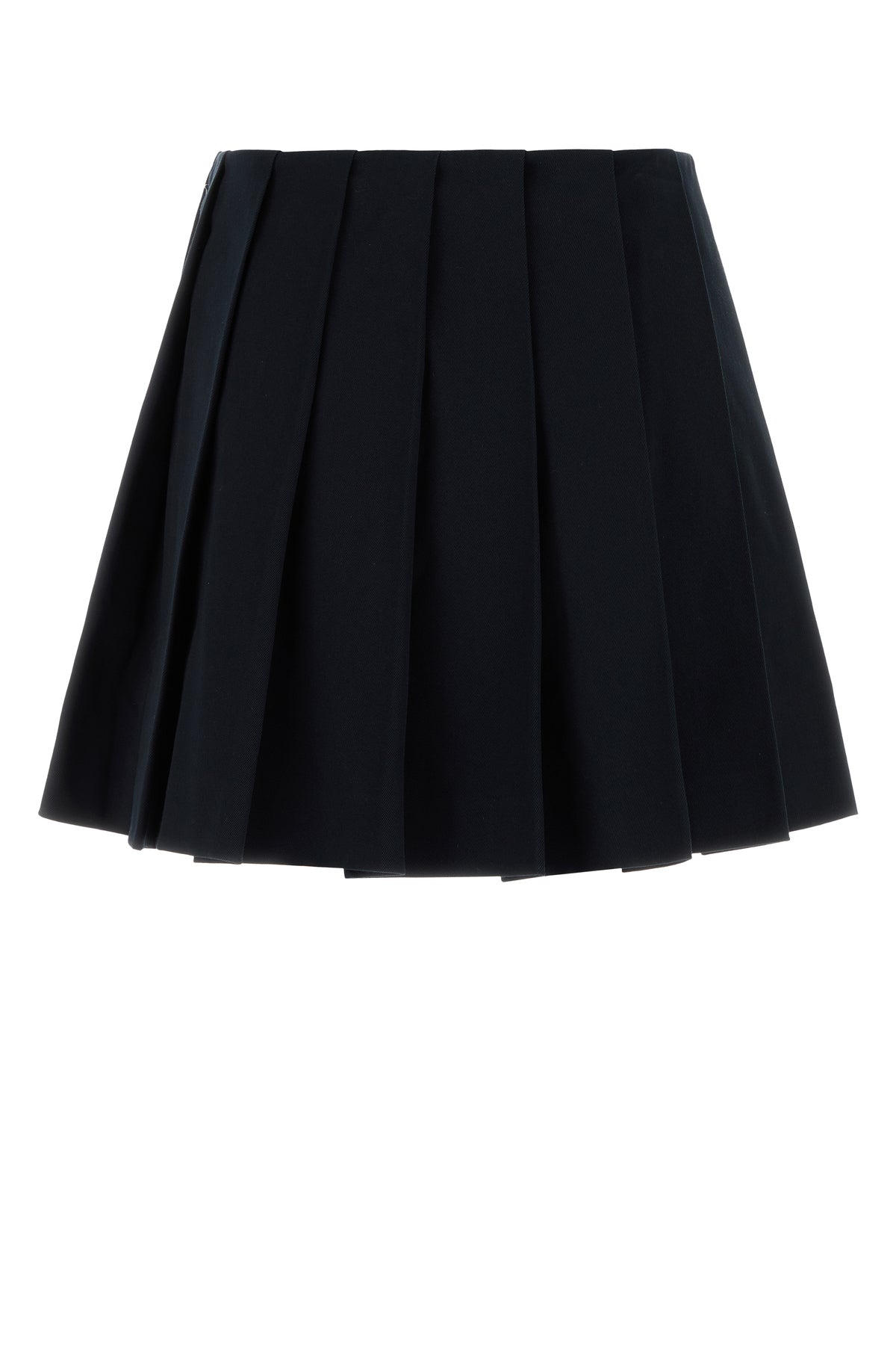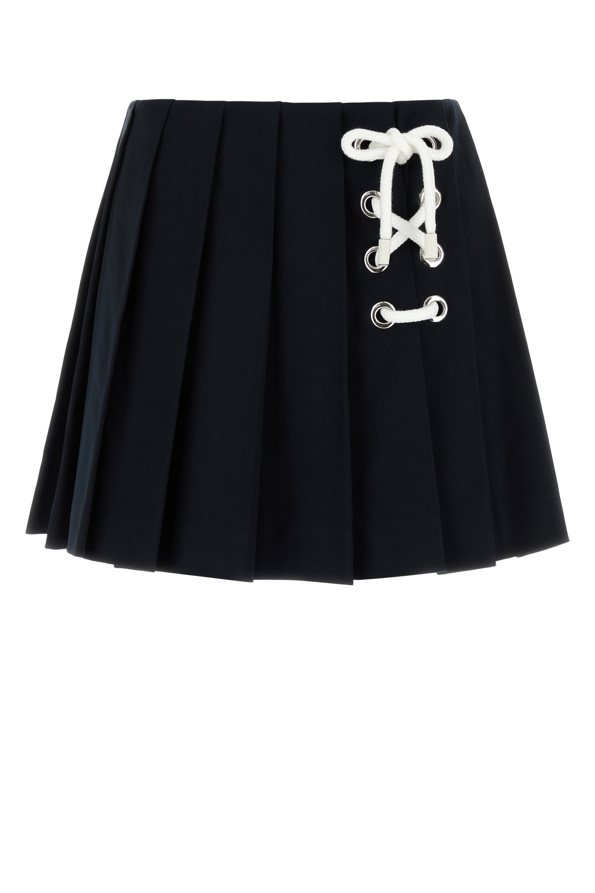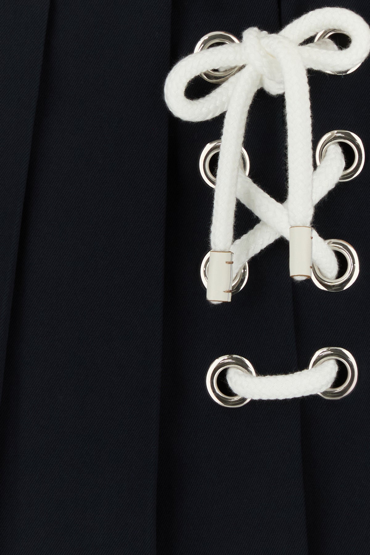 Minigonna plissettata realizzata in drill di cotone stretch arricchita da lacci decorativi sulla parte frontale.