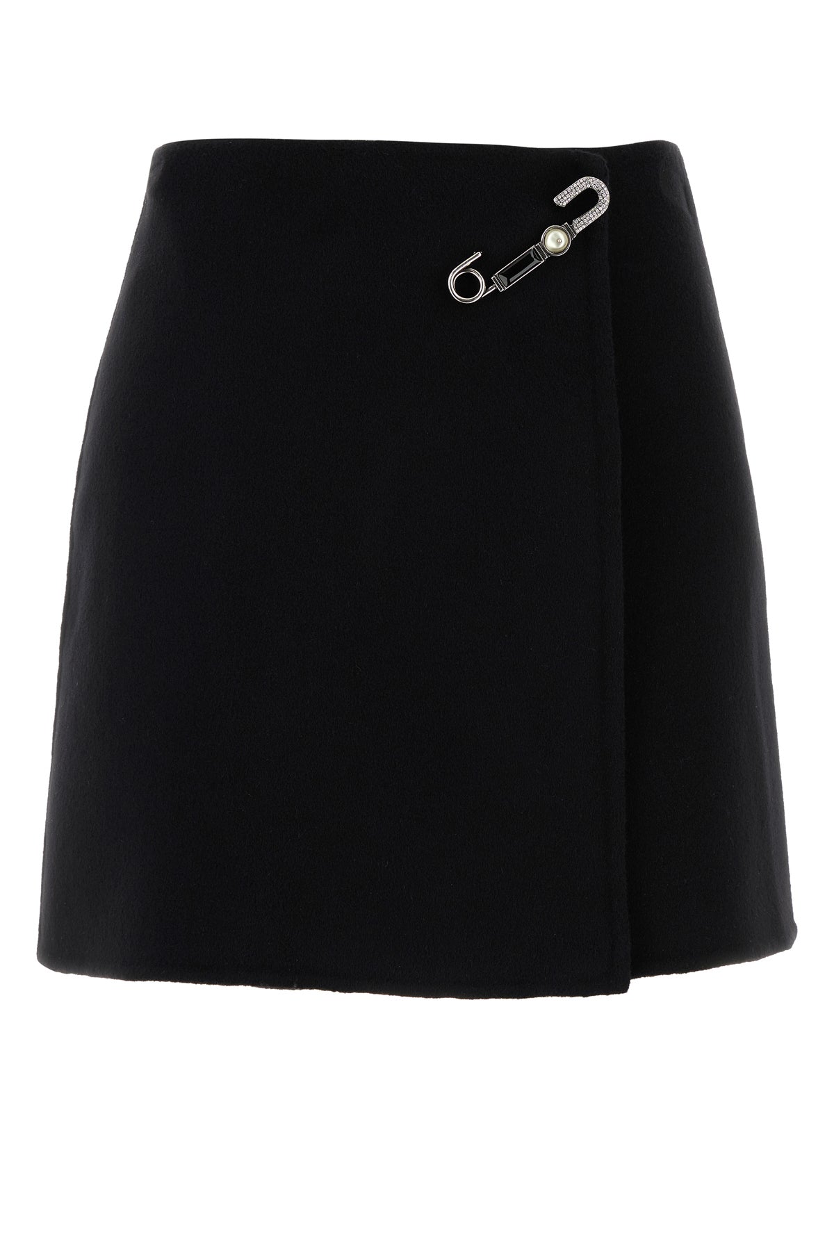 Minigonna realizzata in pura lana arricchita da dettaglio metallico sulla parte frontale.