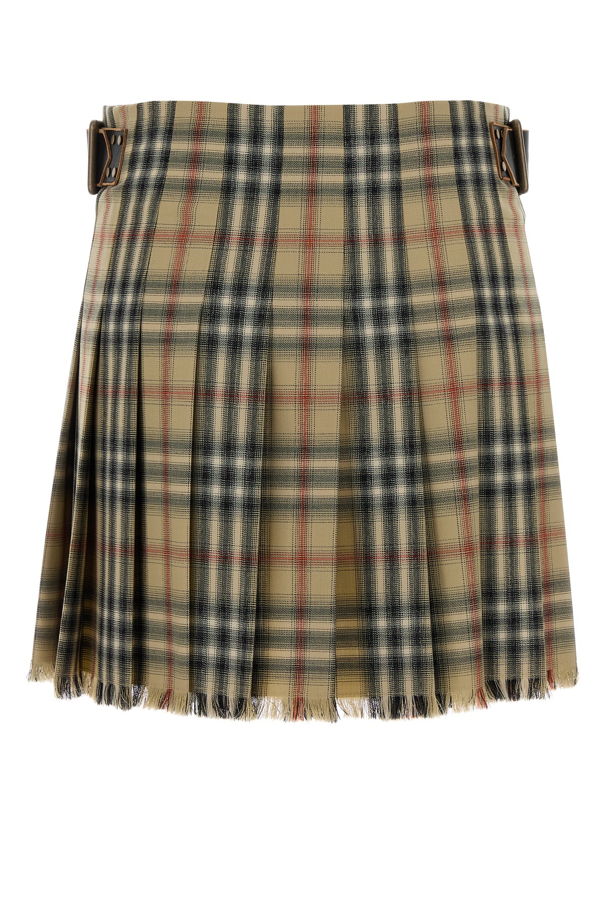 Minigonna realizzata in pura lana caratterizzata da ricamo Burberry Check su tutta la superficie.