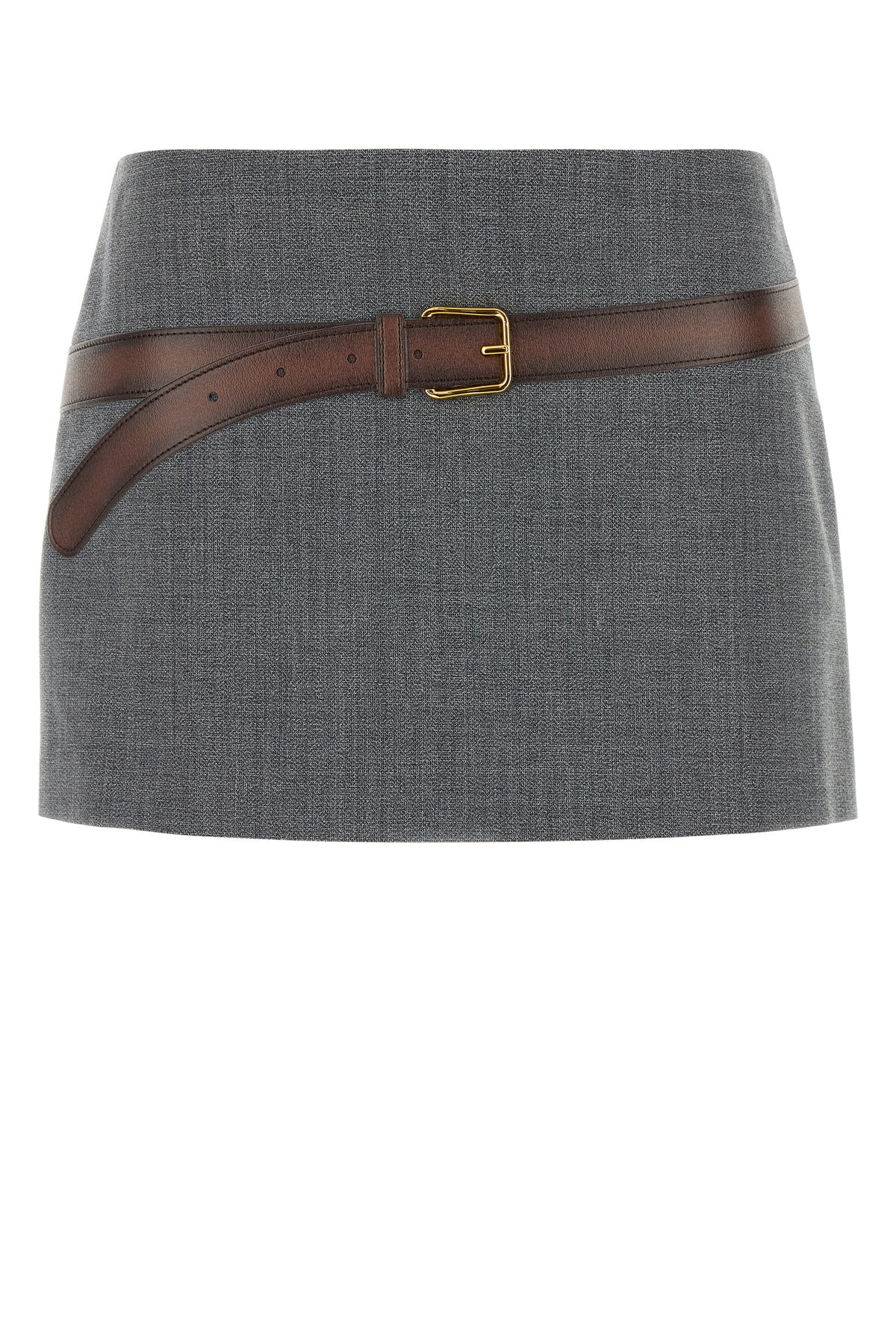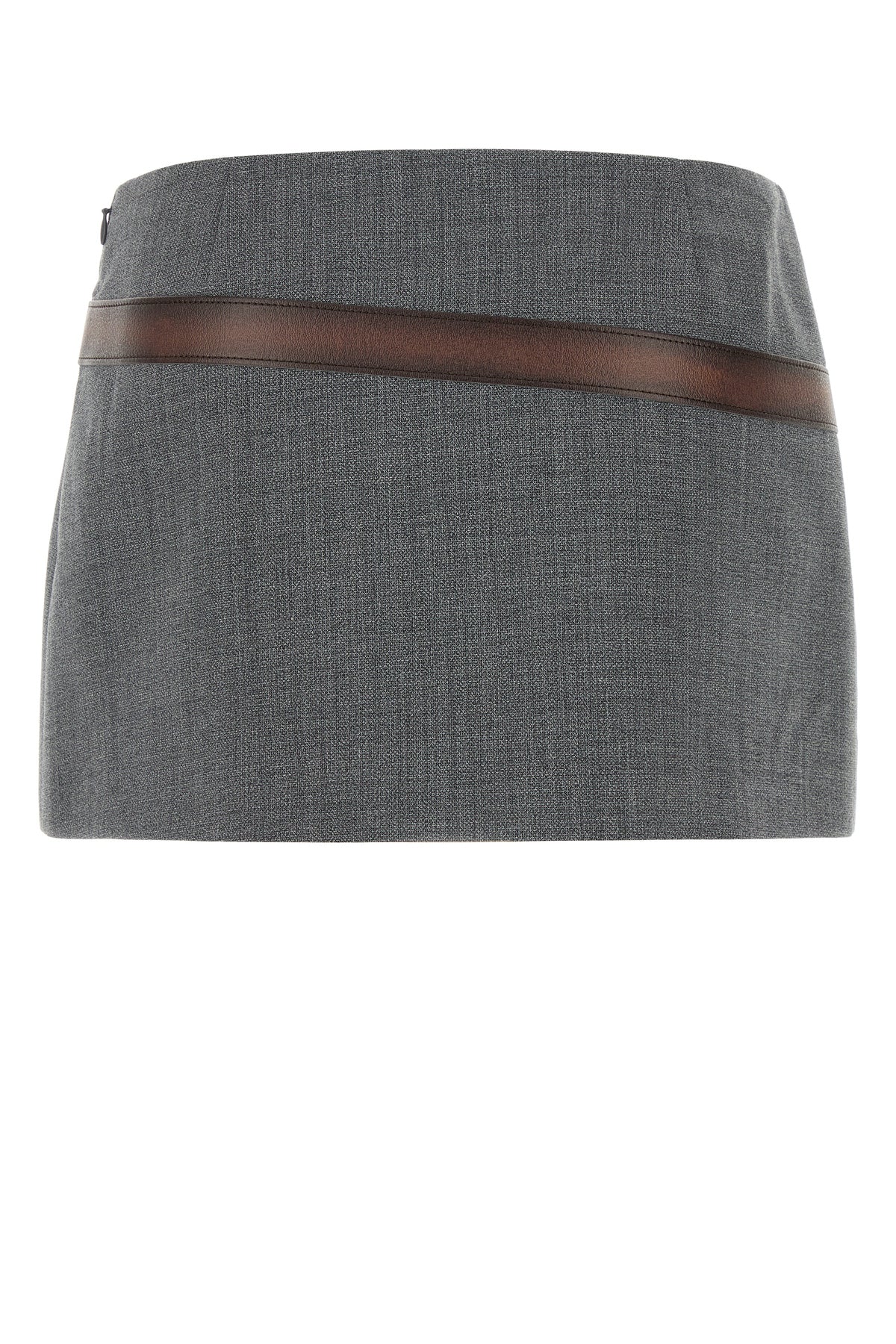 Minigonna realizzata in misto poliestere arricchita da applicazione a forma di cintura sulla parte superiore.
