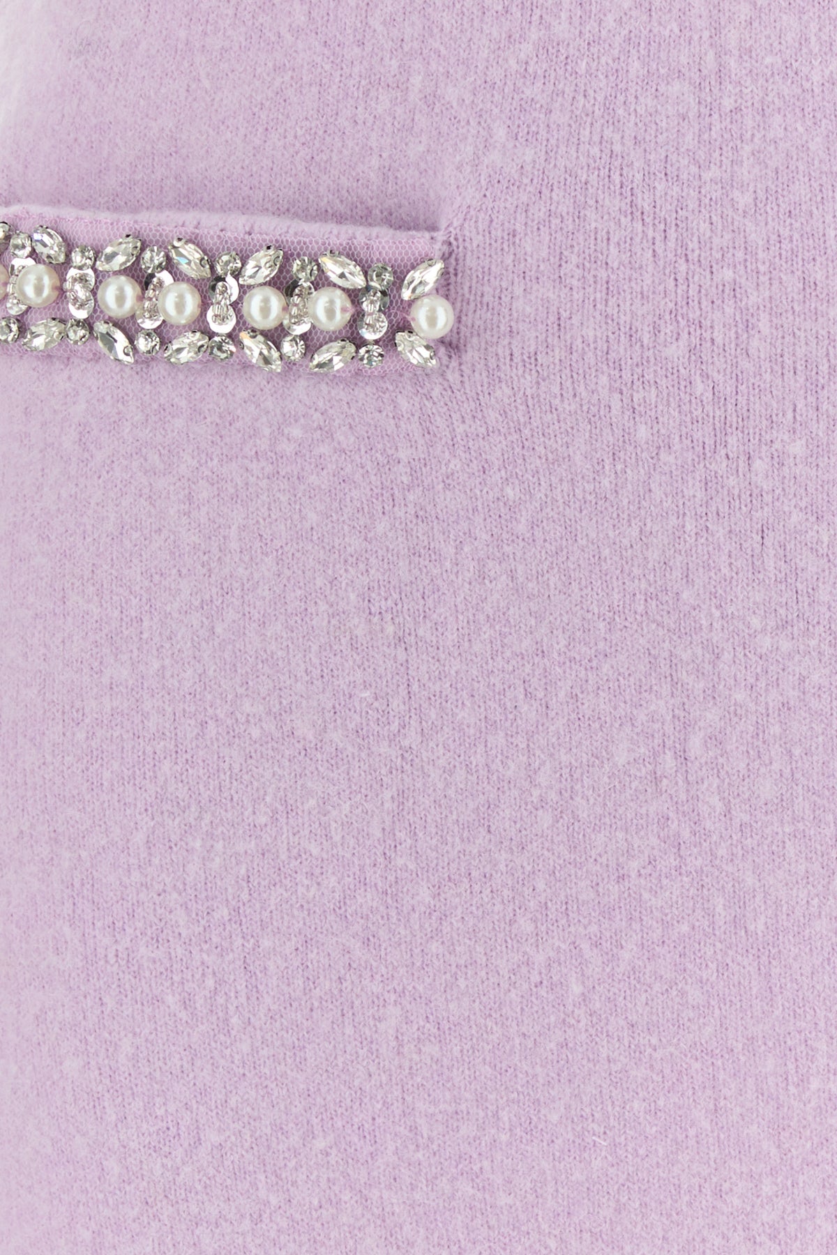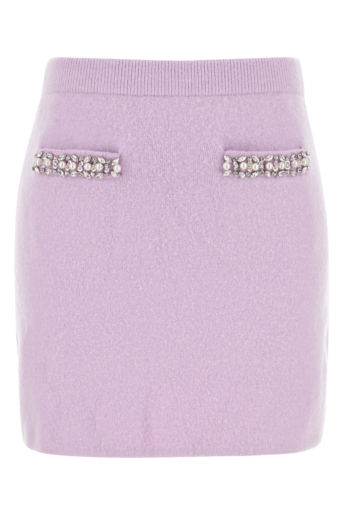 Mini gonna svasata realizzata in misto viscosa stretch arricchita da decorazioni gioiello sulla parte frontale.