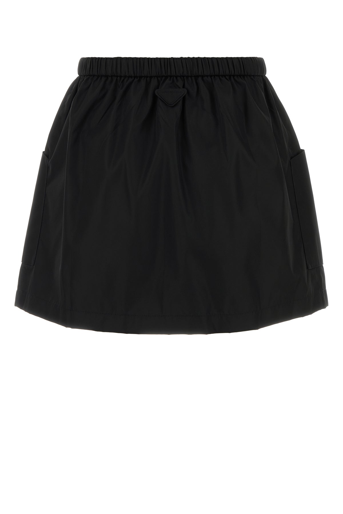 Minigonna realizzata in Re-Nylon arricchita da iconico triangolo in tessuto tonale sul retro.