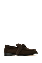 Mocassini realizzati in pelle scamosciata arricchiti da applicazione Knot sulla mascherina.