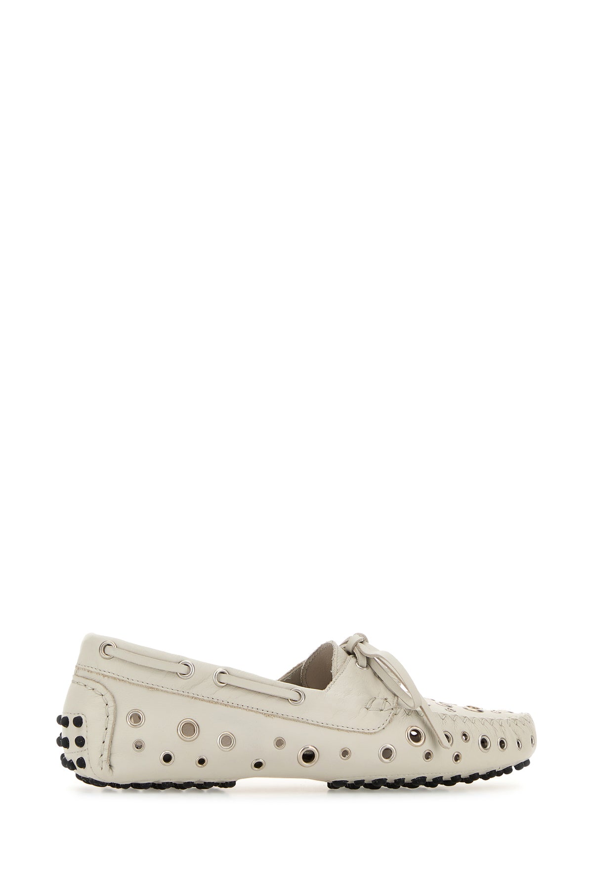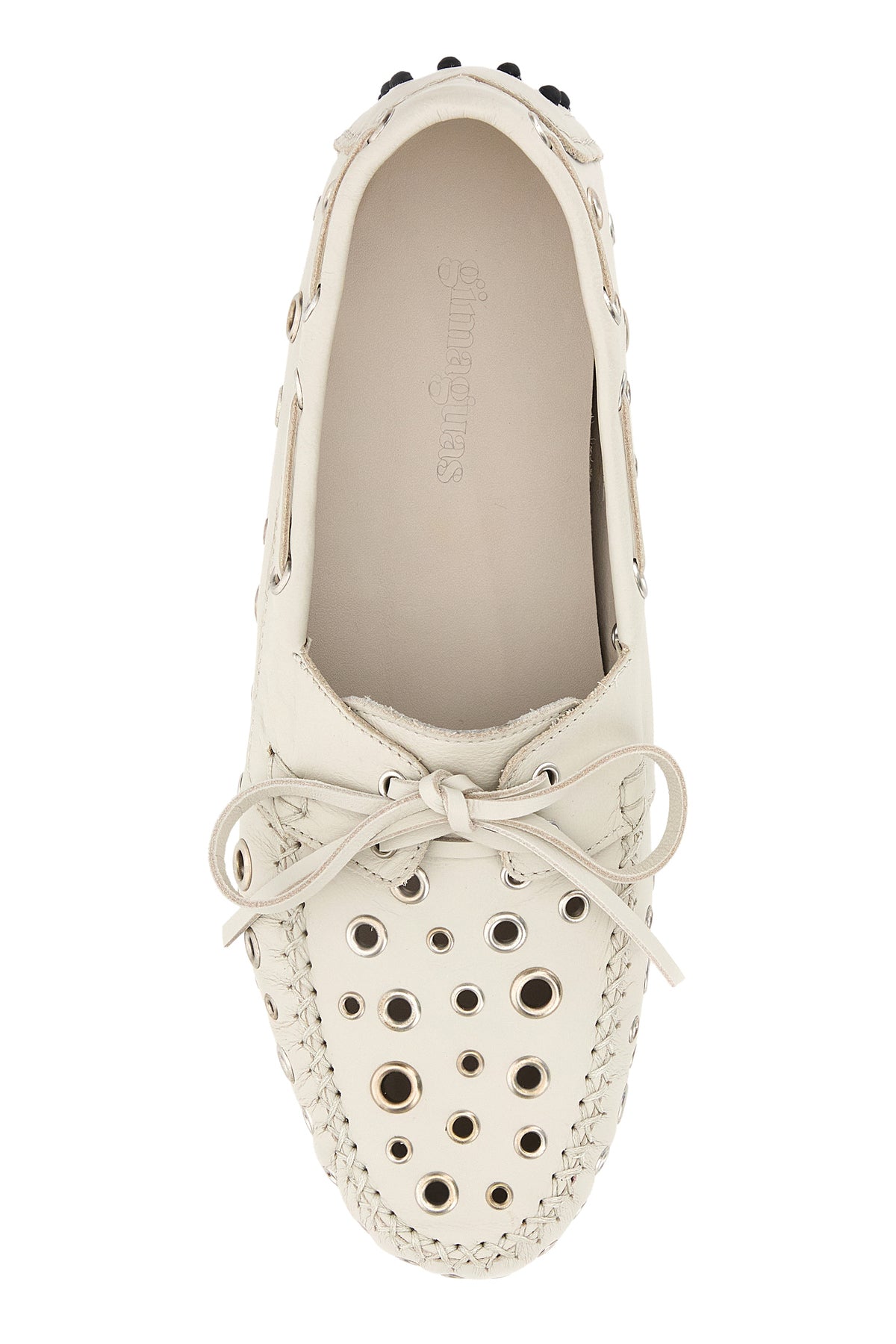 Mocassini realizzati in pelle scamosciata arricchiti da borchie metalliche su tutta la superficie.