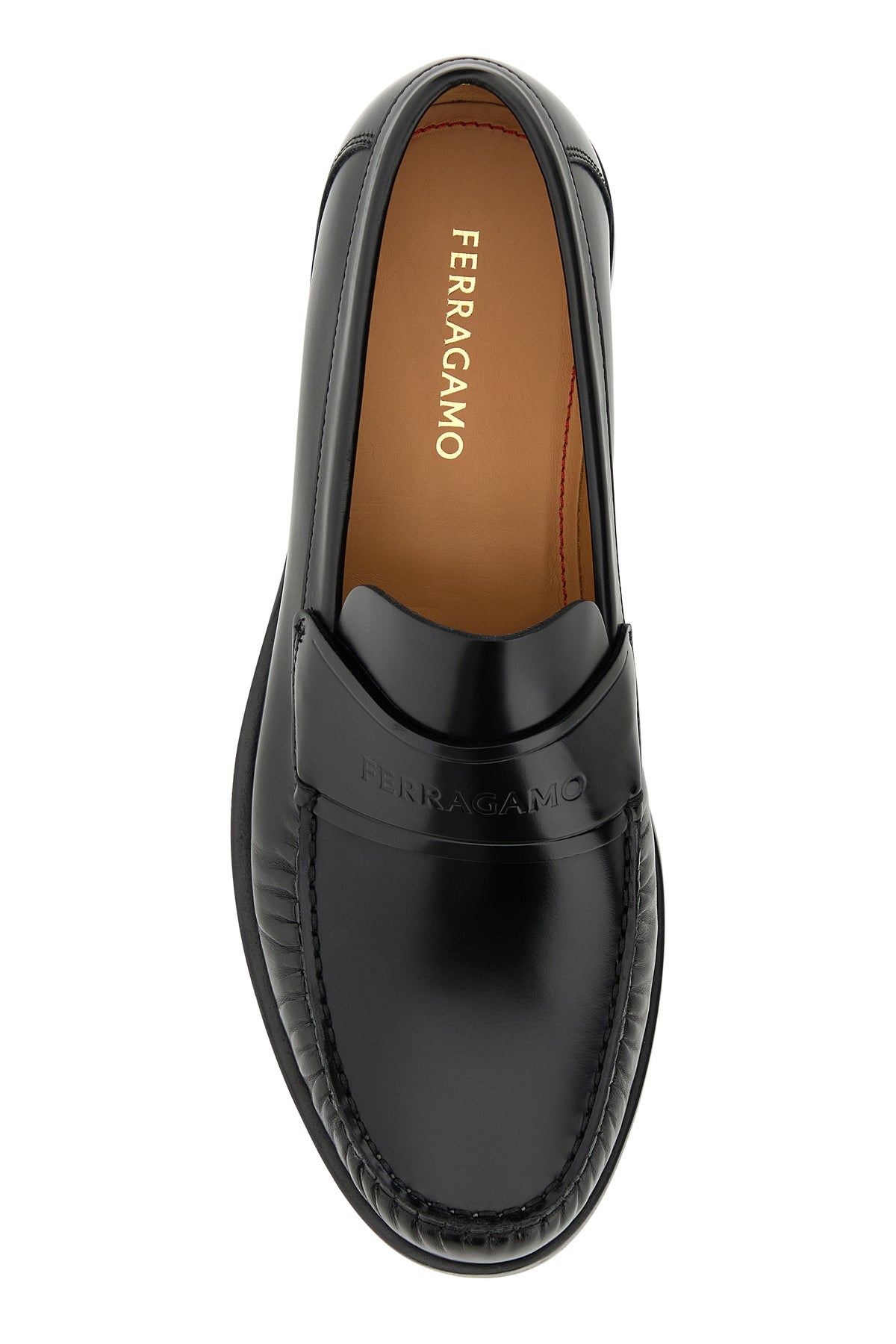 Mocassini realizzati in pelle di vitello liscia dal finish lucido caratterizzati da logo impresso sulla mascherina.