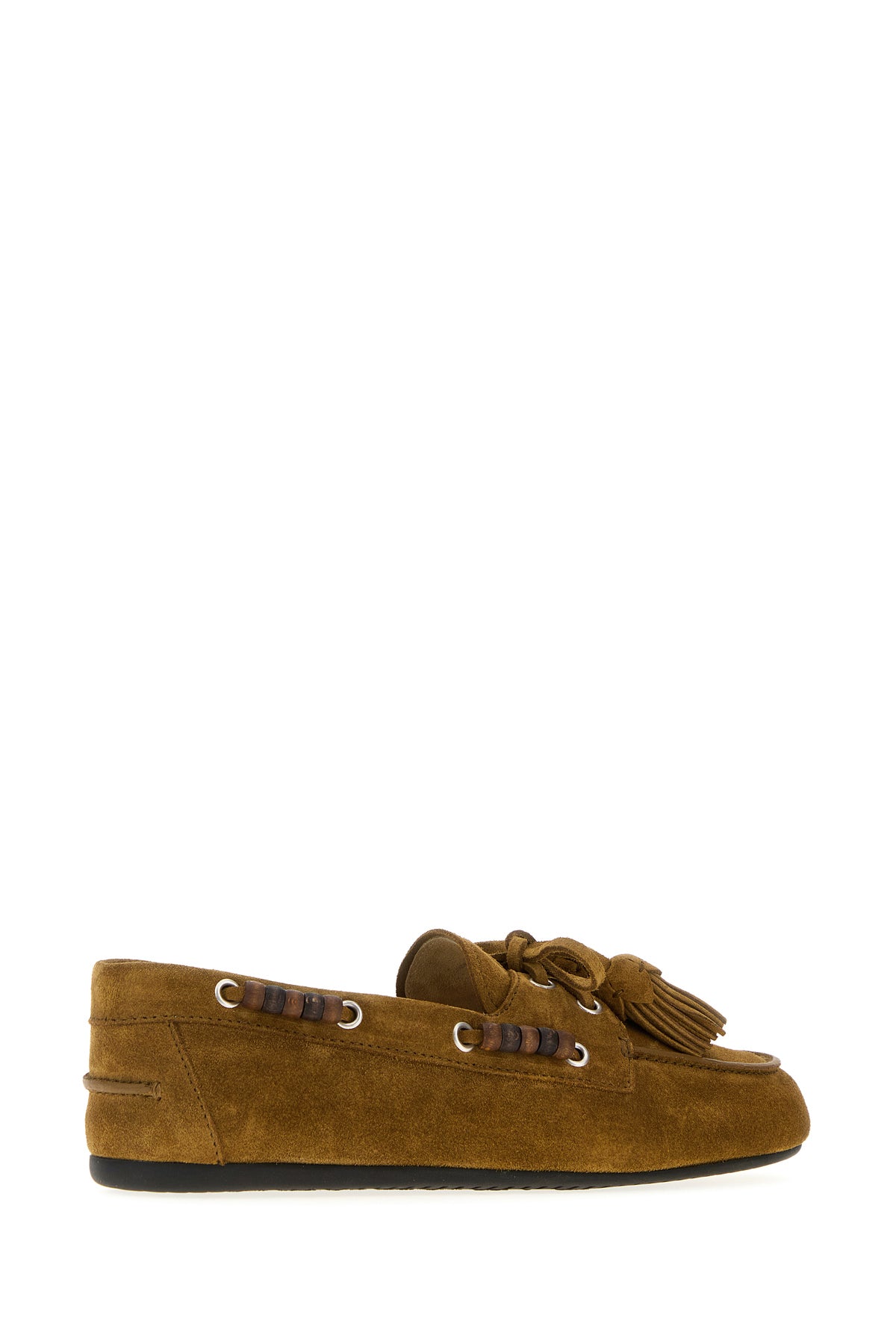 Mocassini realizzati in pelle arricchiti caratterizzati da nappine decorative sul collo del piede.