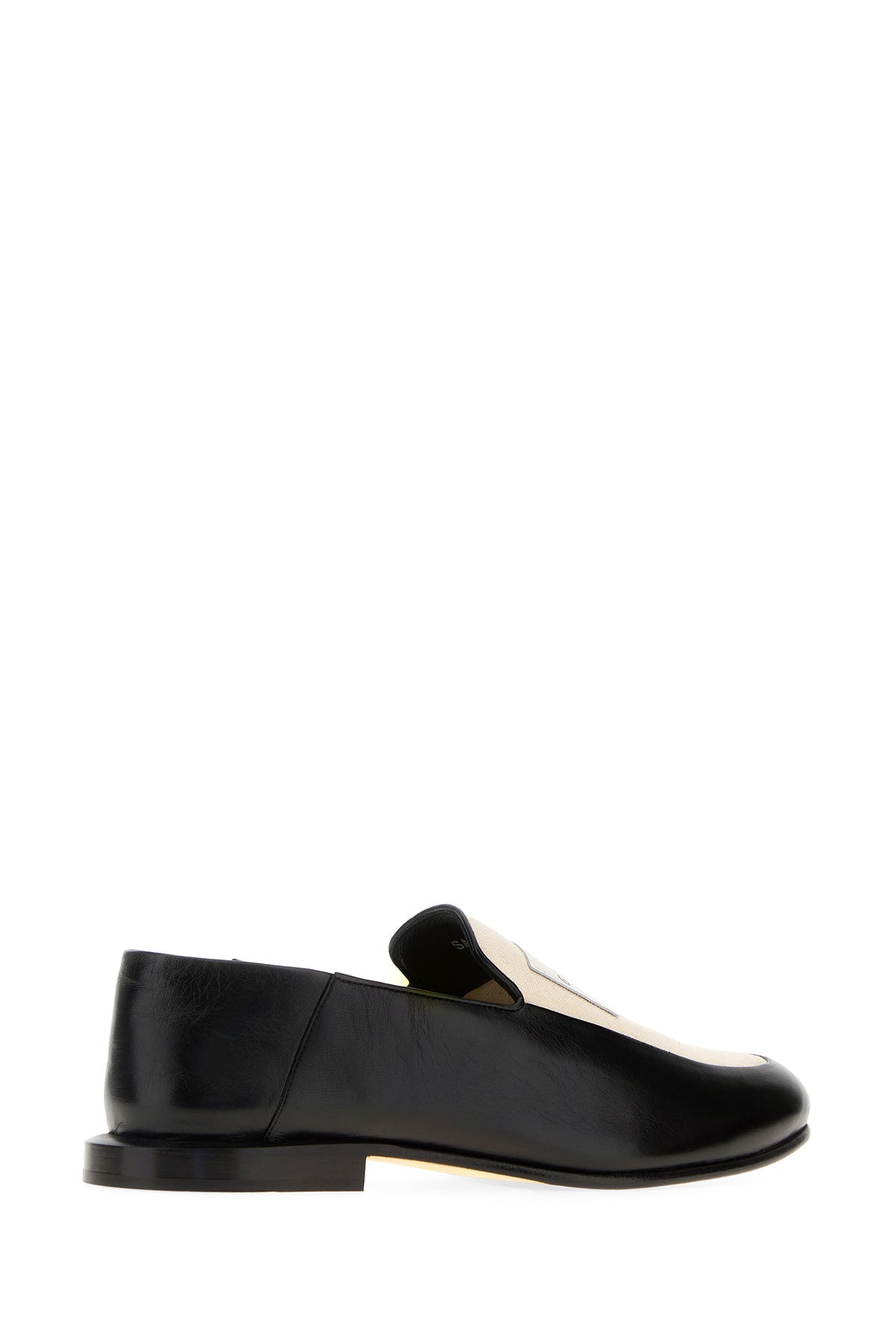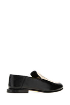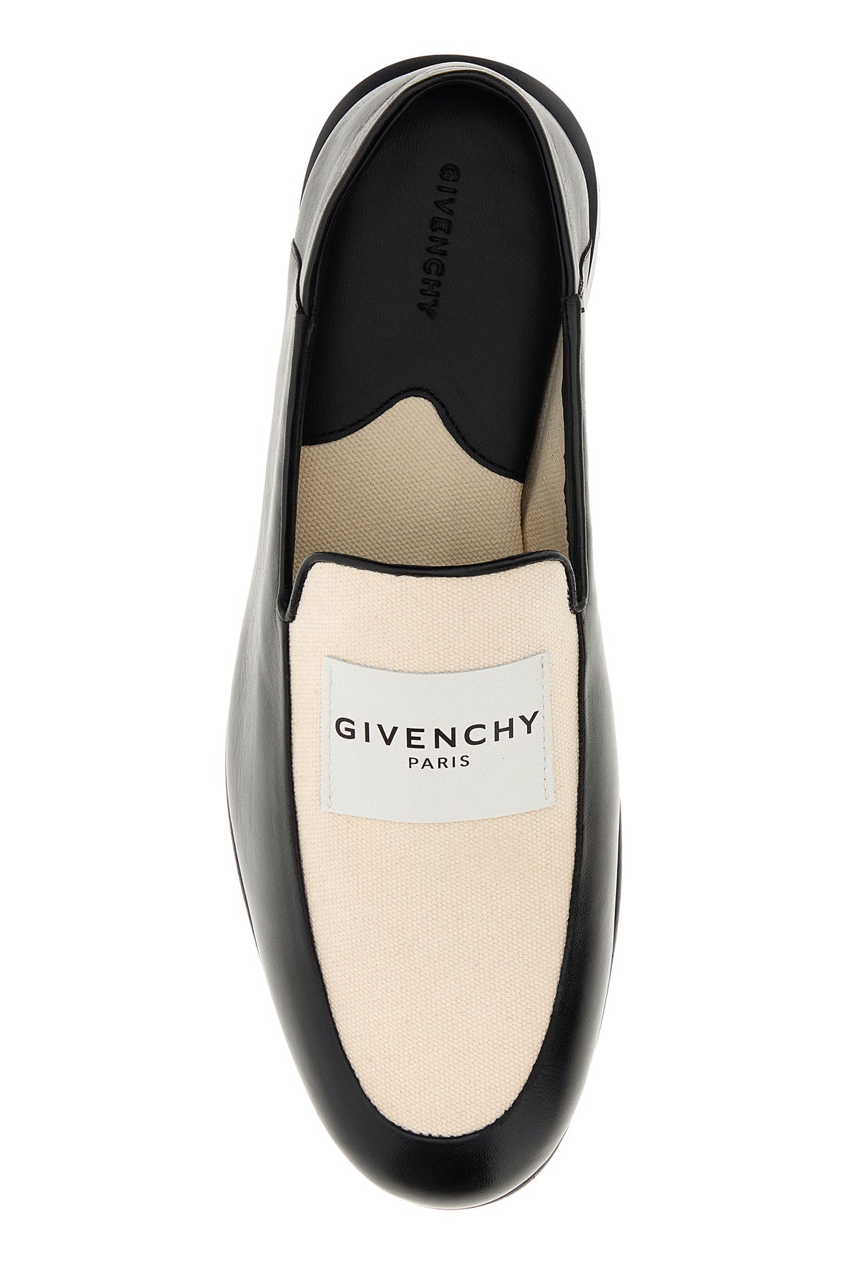 Mocassini realizzati in pelle di agnello e tela arricchiti da etichetta logata sul collo del piede.