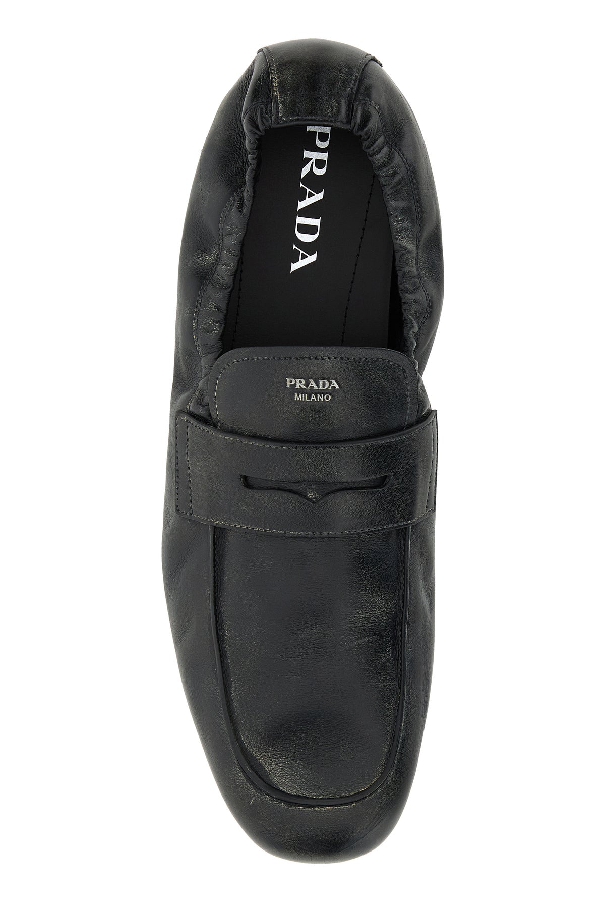 Mocassini realizzati in pelle di vitello ad effetto vintage caratterizzati da logo stampato sulla mascherina.