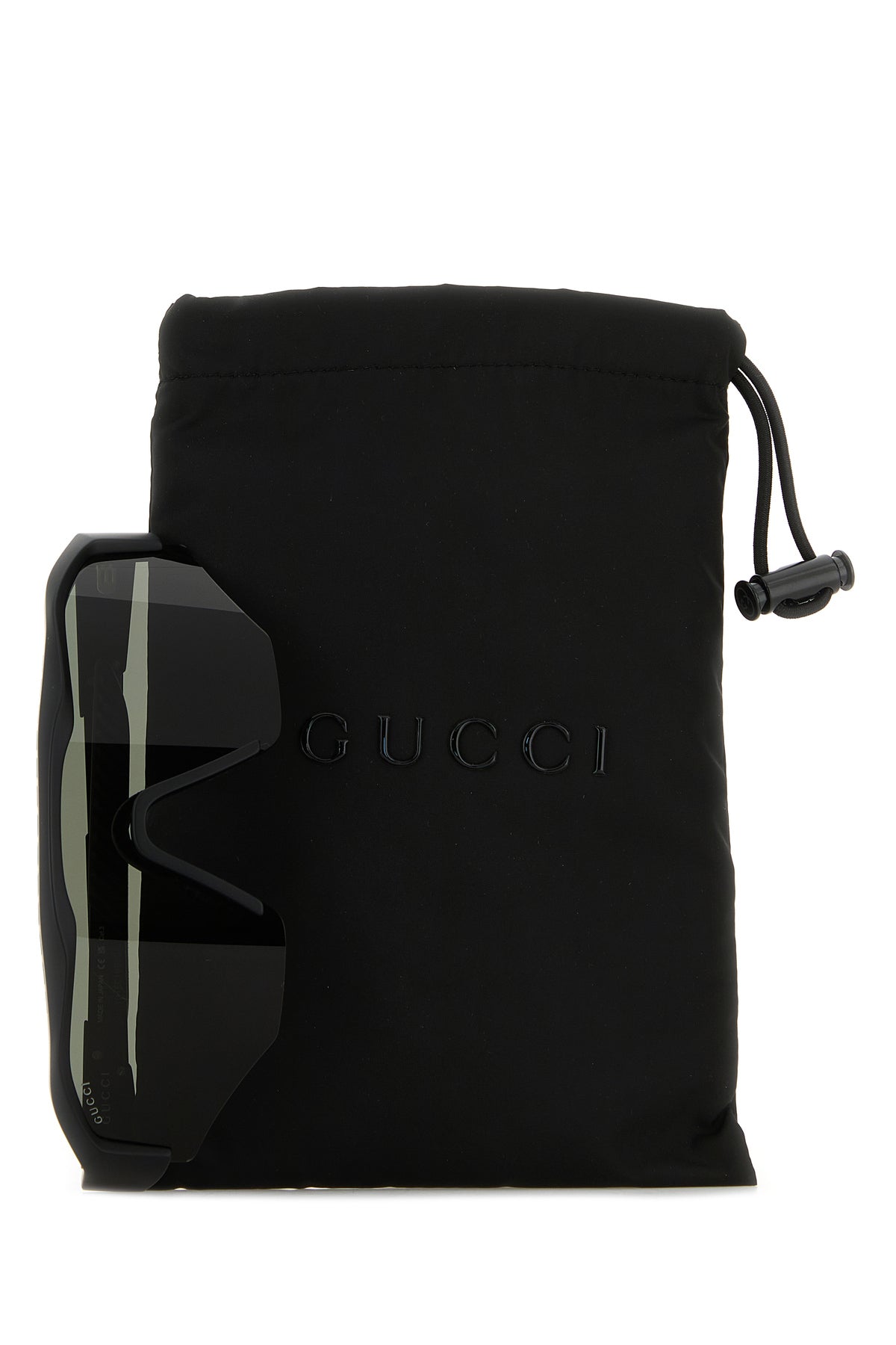 Occhiali da sole a mascherina realizzati in acetato arricchiti da logo in lettere metalliche sulle bacchette.