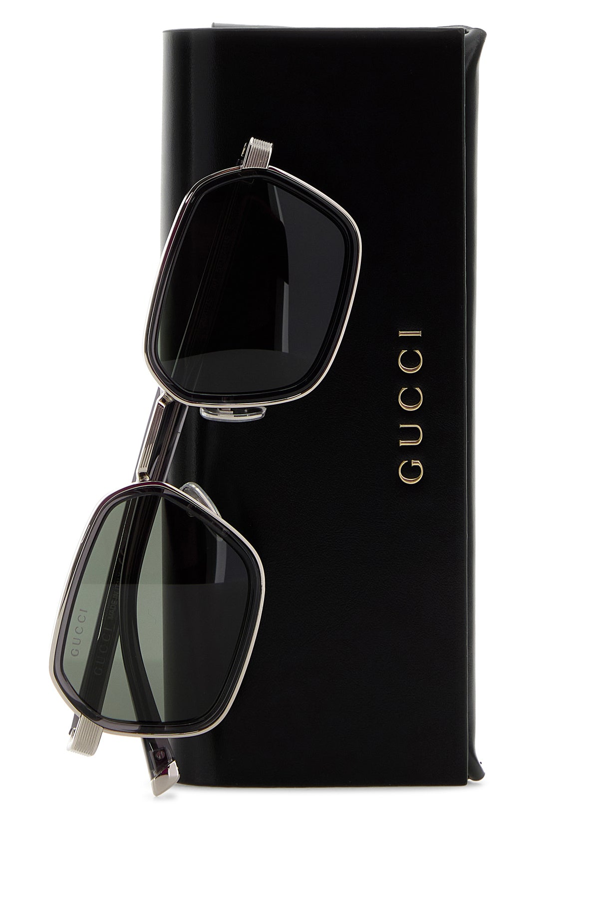 Occhiali da sole realizzati in metallo caratterizzati da logo Gucci impresso sulle bacchette.