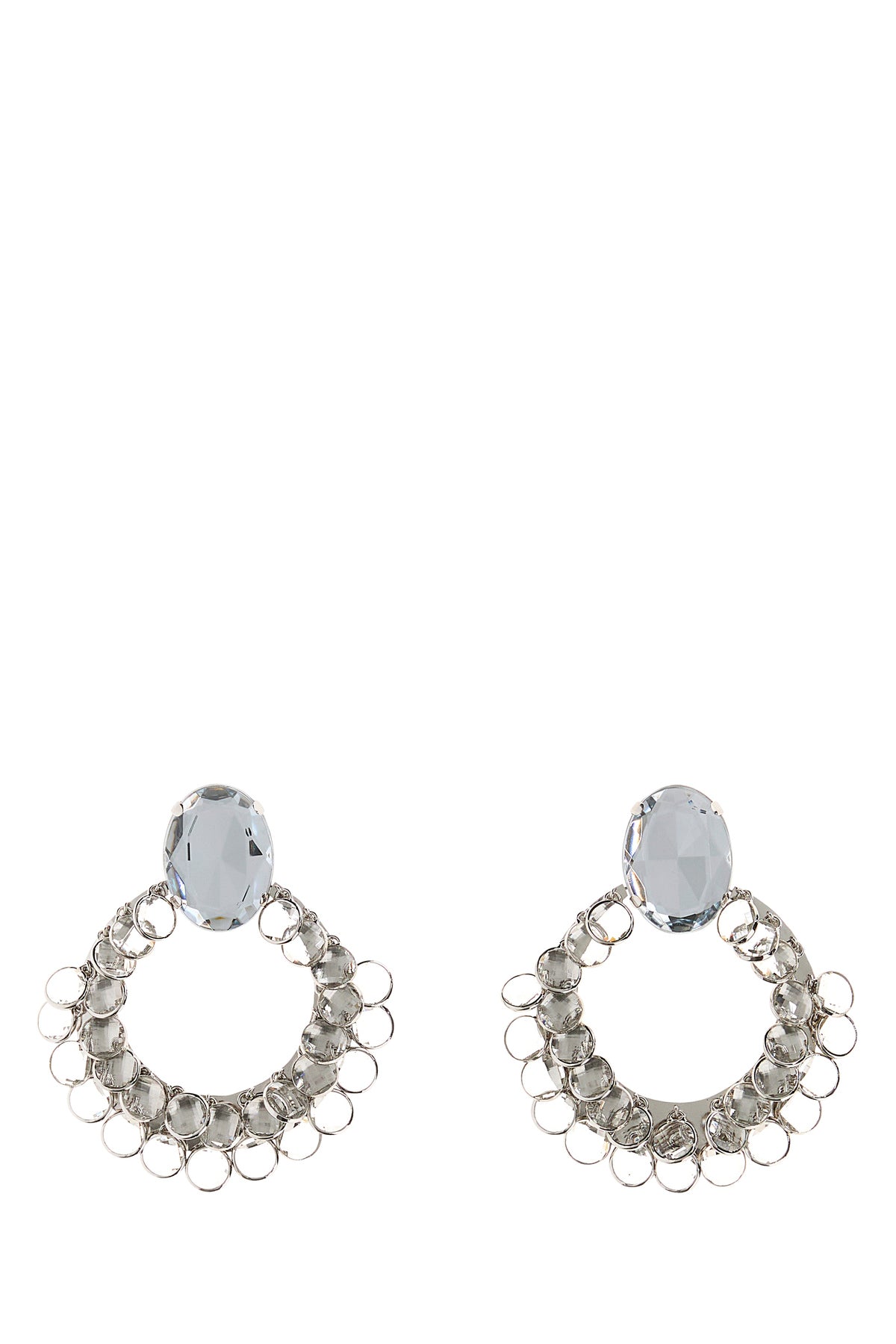 Orecchini realizzati in metallo arricchiti da cristalli su tutta la superficie.