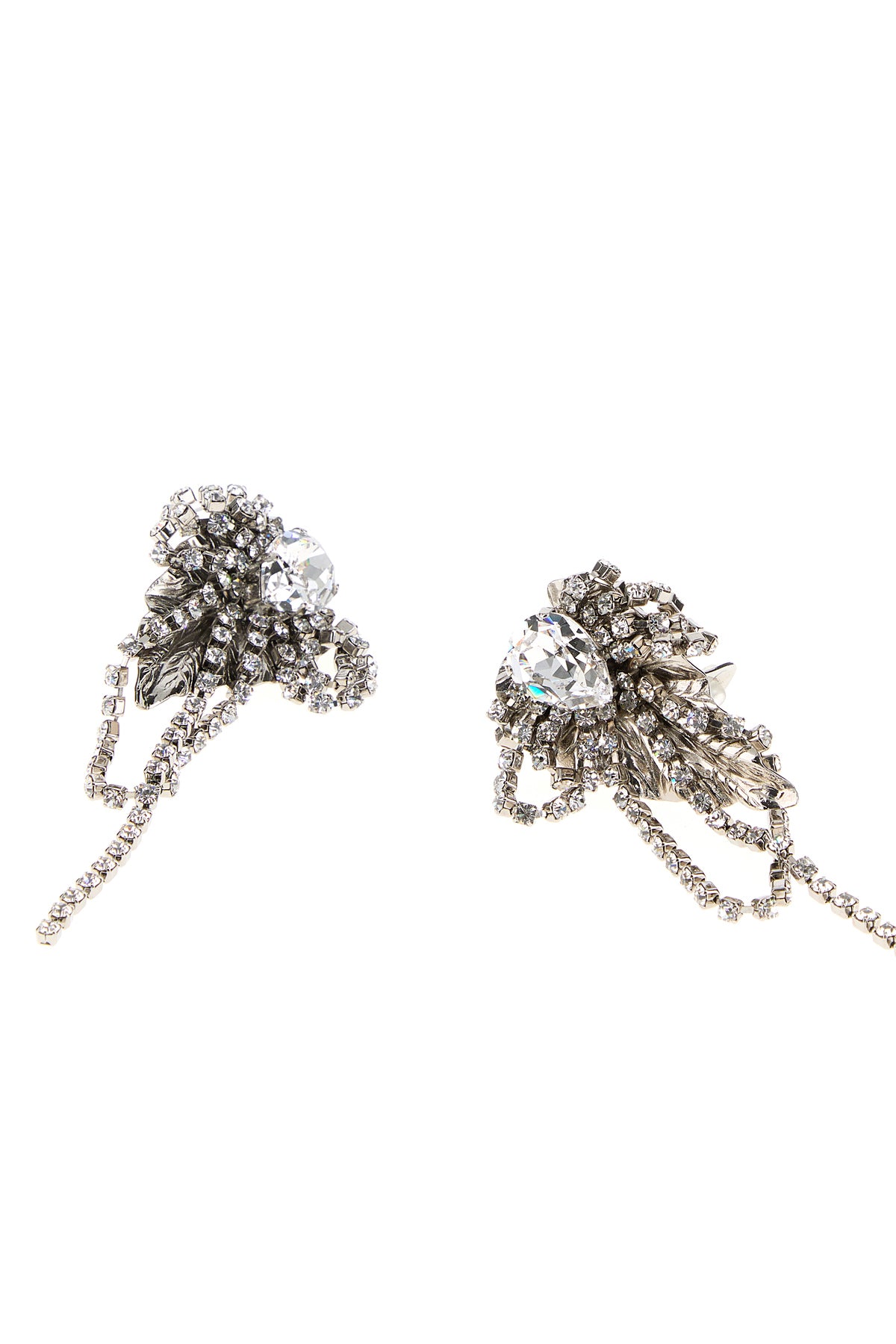 Orecchini pendenti realizzati in metallo arricchiti da cristalli.