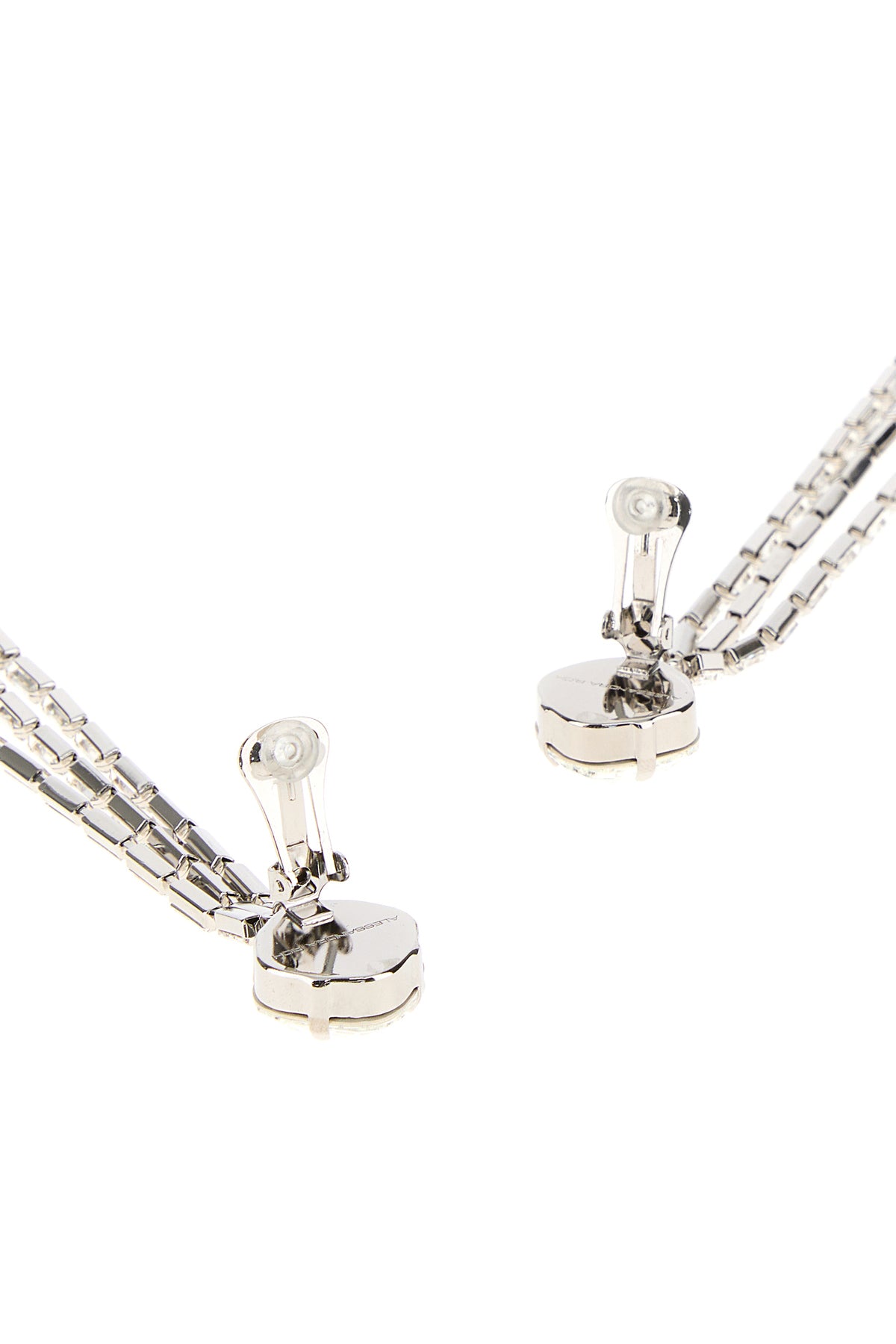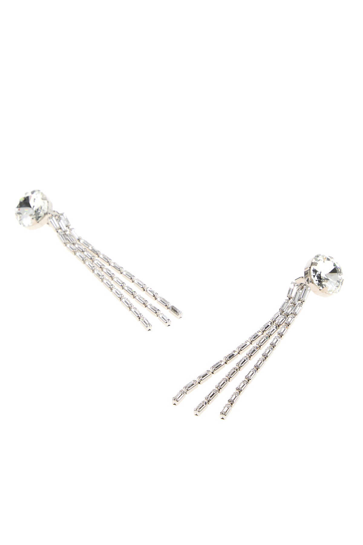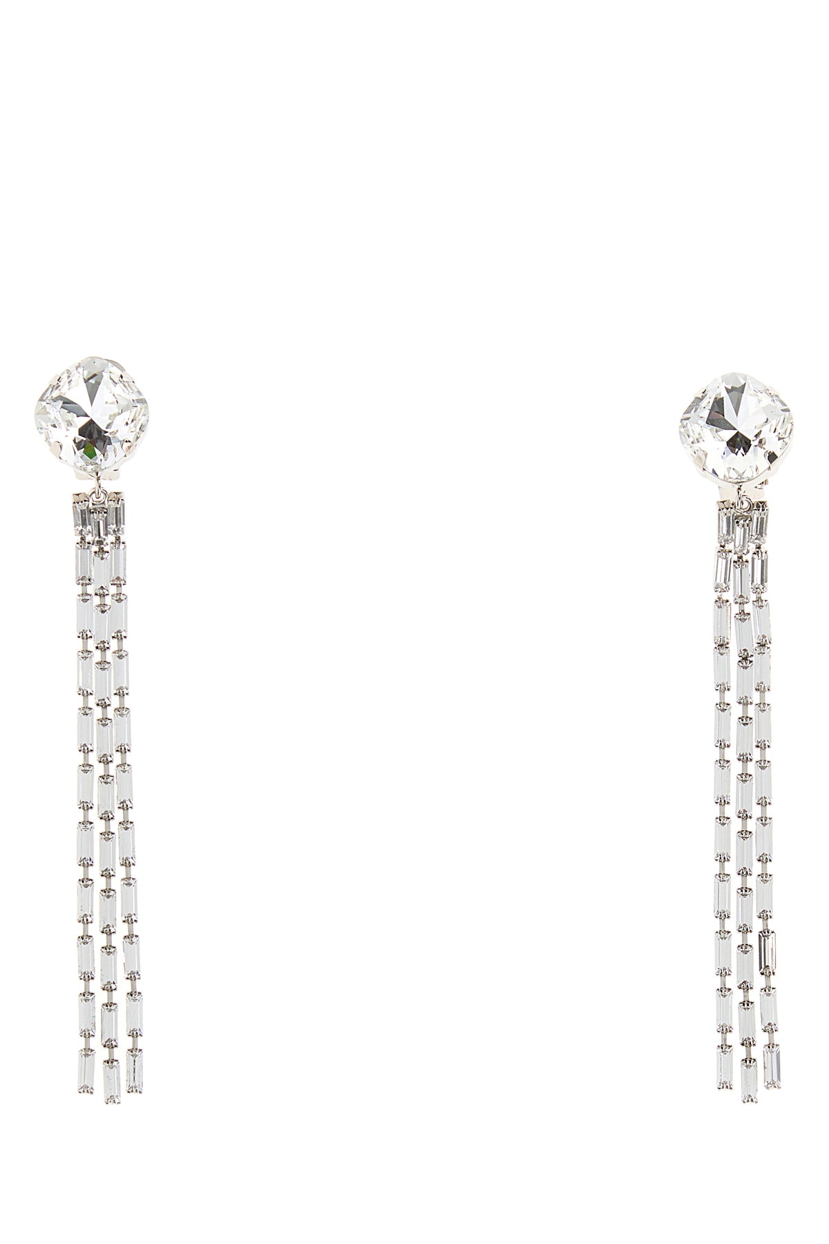 Orecchini pendenti realizzati in metallo arricchiti da cristalli.