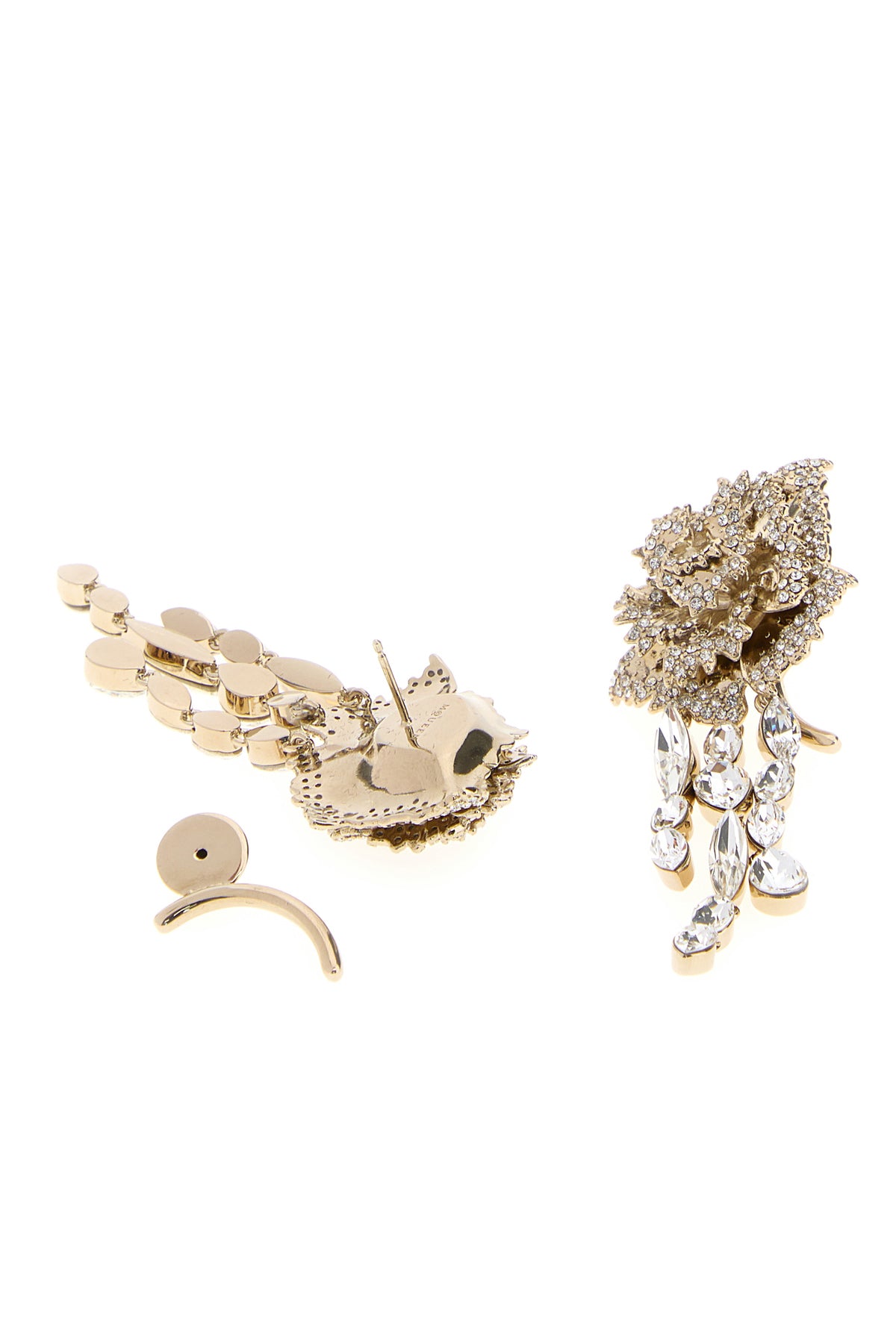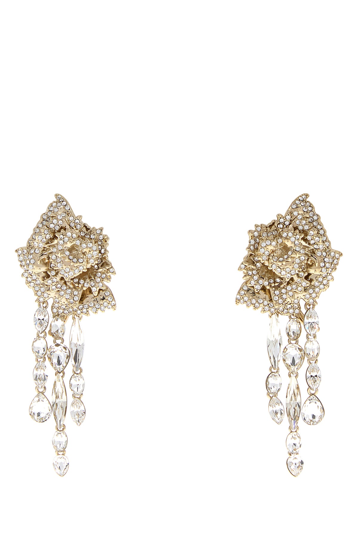 Orecchini realizzati in metallo placcato color oro interamente ricoperti di cristalli.