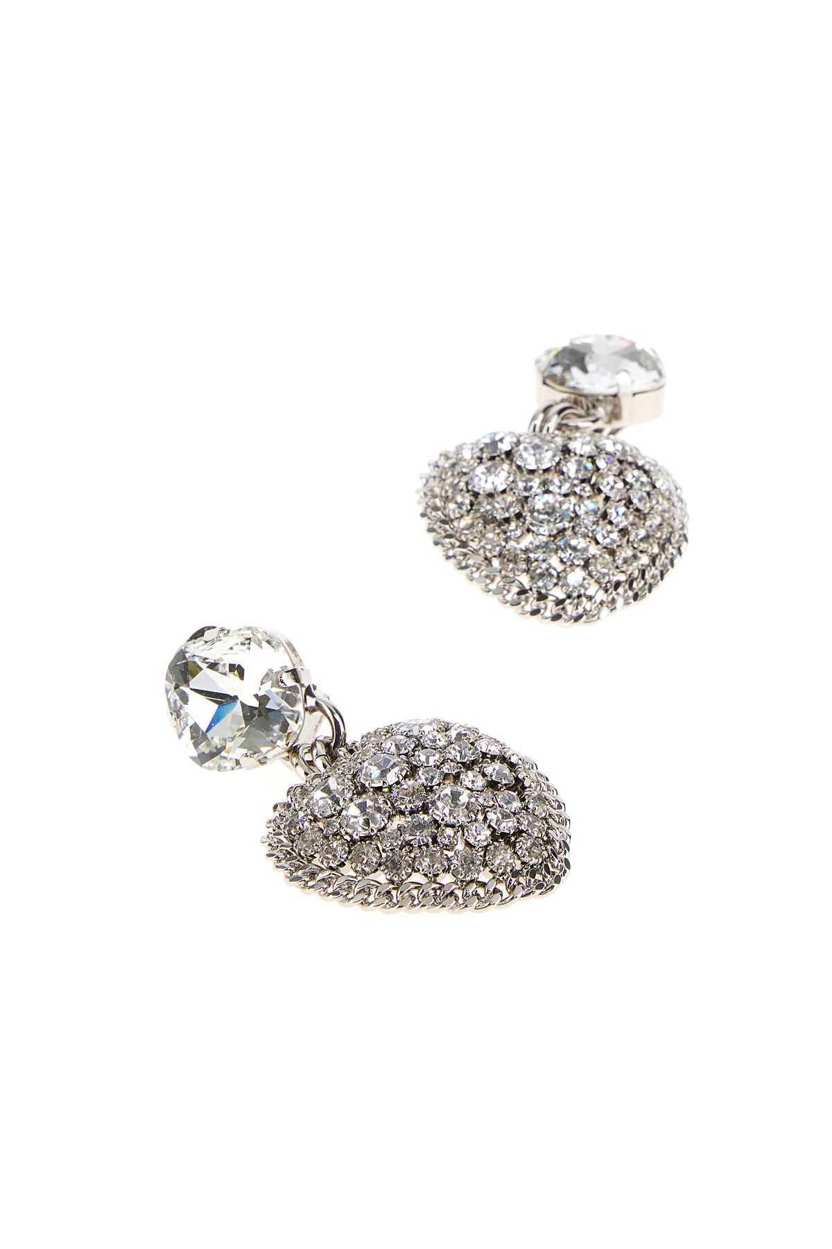 Orecchini pendenti realizzati in metallo arricchiti da cristalli.